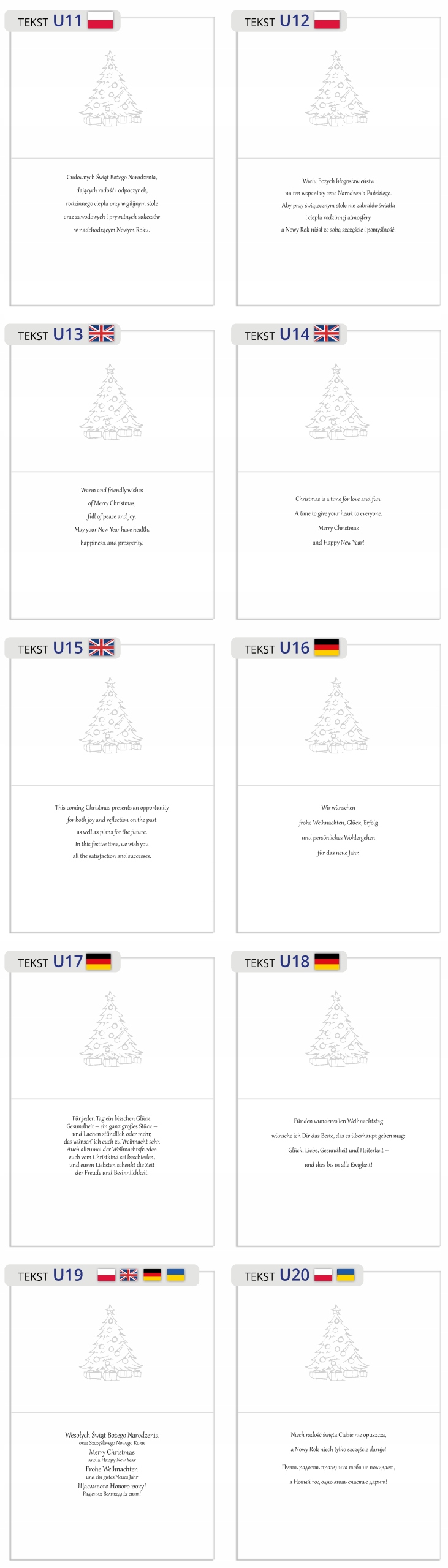 Різдвяні листівки виготовляються спеціально під індивідуальне замовлення з повною персоналізацією (можливість розміщення власного логотипу / реквізитів компанії / тексту тощо). зроблено з крейдяного паперу найвищої якості.