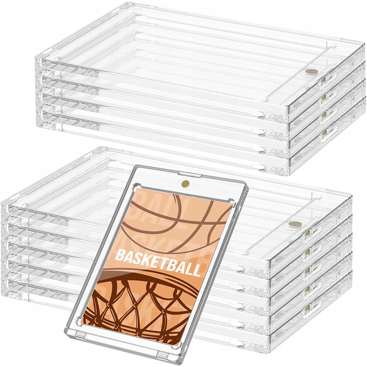 10 прозорі магнітні картки 35pt в одній упаковці. Акриловий матеріал. Розмір приблизно 11*7,3*0,8 см. Відрегулюйте стандартні спортивні картки або ігрові картки (2,5 "* 3.5").