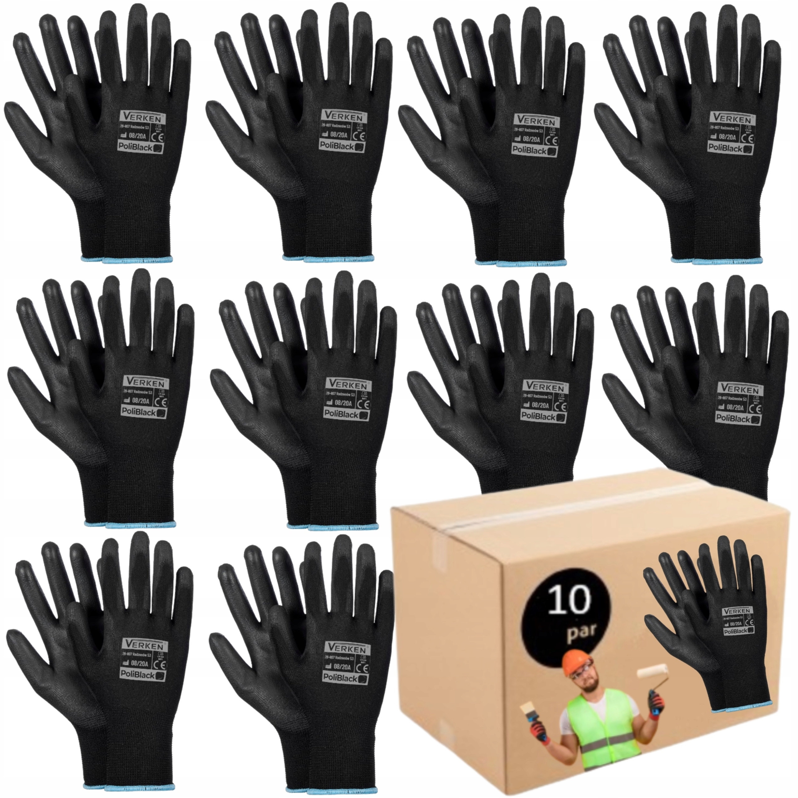 10x Рукавички ПОЛІУРЕТАНОВІ Робочі РУКАВИЧКИ 10