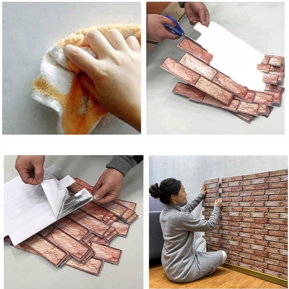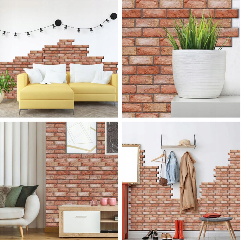 ✅3D тривимірні наклейки на стіну: поверхня стінової панелі має ефект тривимірної цегли. рельєф, який істотно впливає на зір і дотик, роблячи простір більш сучасним і простим.