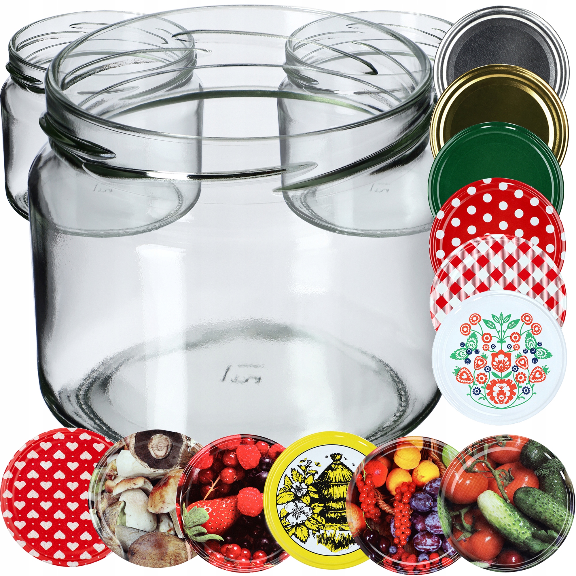 ✅ РІЗНО - скляні банки доступні в кількості 10, 20, 50 або 100 штук . У нашій пропозиції також є баночки зі спеціальними одноколірними та візерунковими кришками.