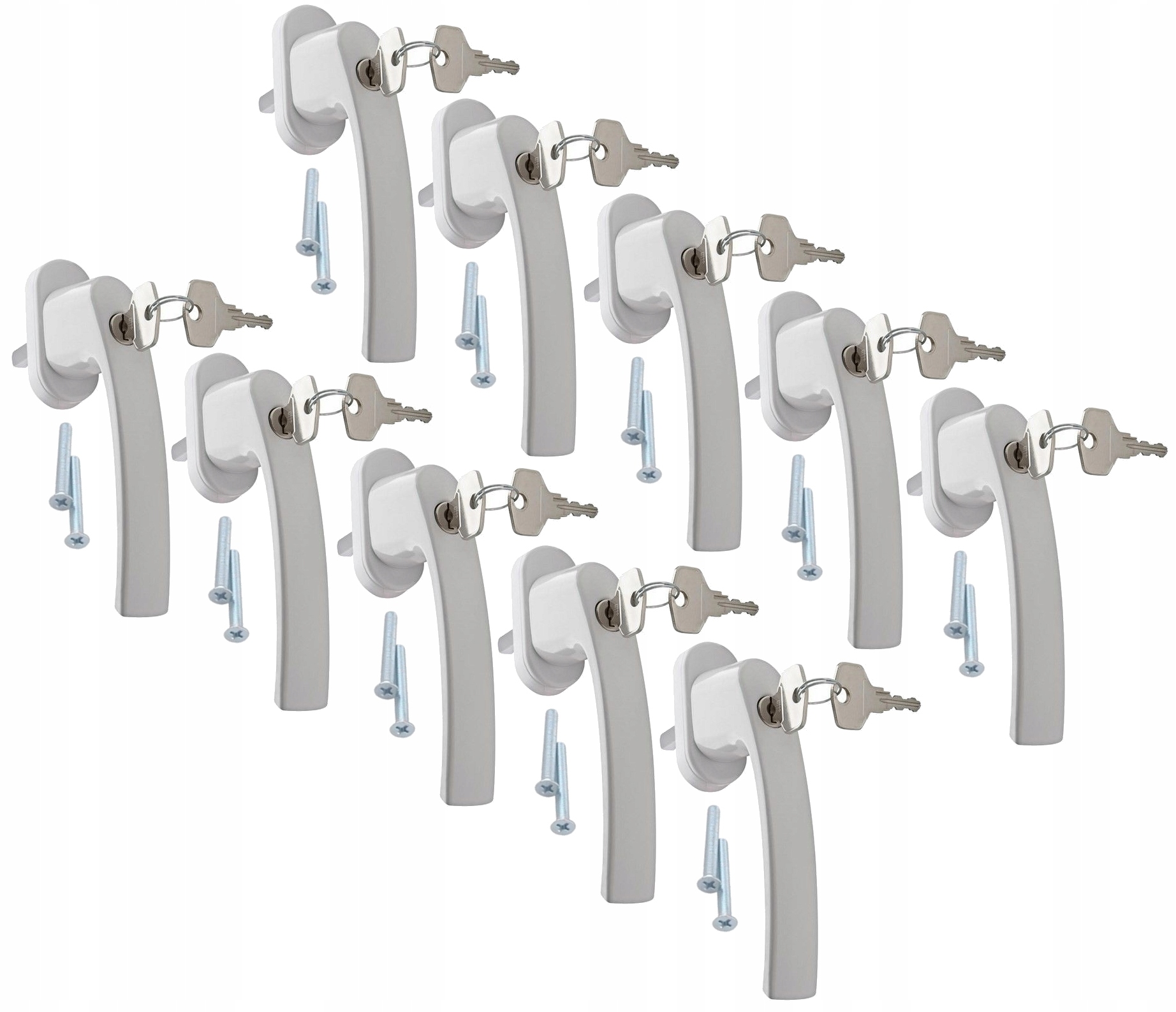 10x ВІКОННА РУЧКА, ЗАМОК, БІЛИЙ КЛЮЧ