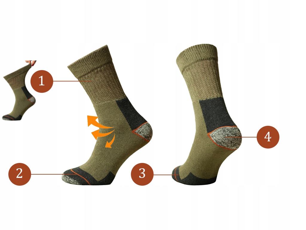 ПОЛЬЩА ДУЖЕ ТОВСТІ і міцні ВІЙСЬКОВІ ШКАПЕТКИ FROTTE. Теплі товсті зимові шкарпетки, посилені на носках і п'ятах із захисними зонами і плоским швом без тиску. Завдяки цьому шкарпетки можна використовувати як військові шкарпетки, махрові робочі гігієнічні шкарпетки, шкарпетки для походів і спеціальних завдань. Надміцний носок, добре вбирає піт.