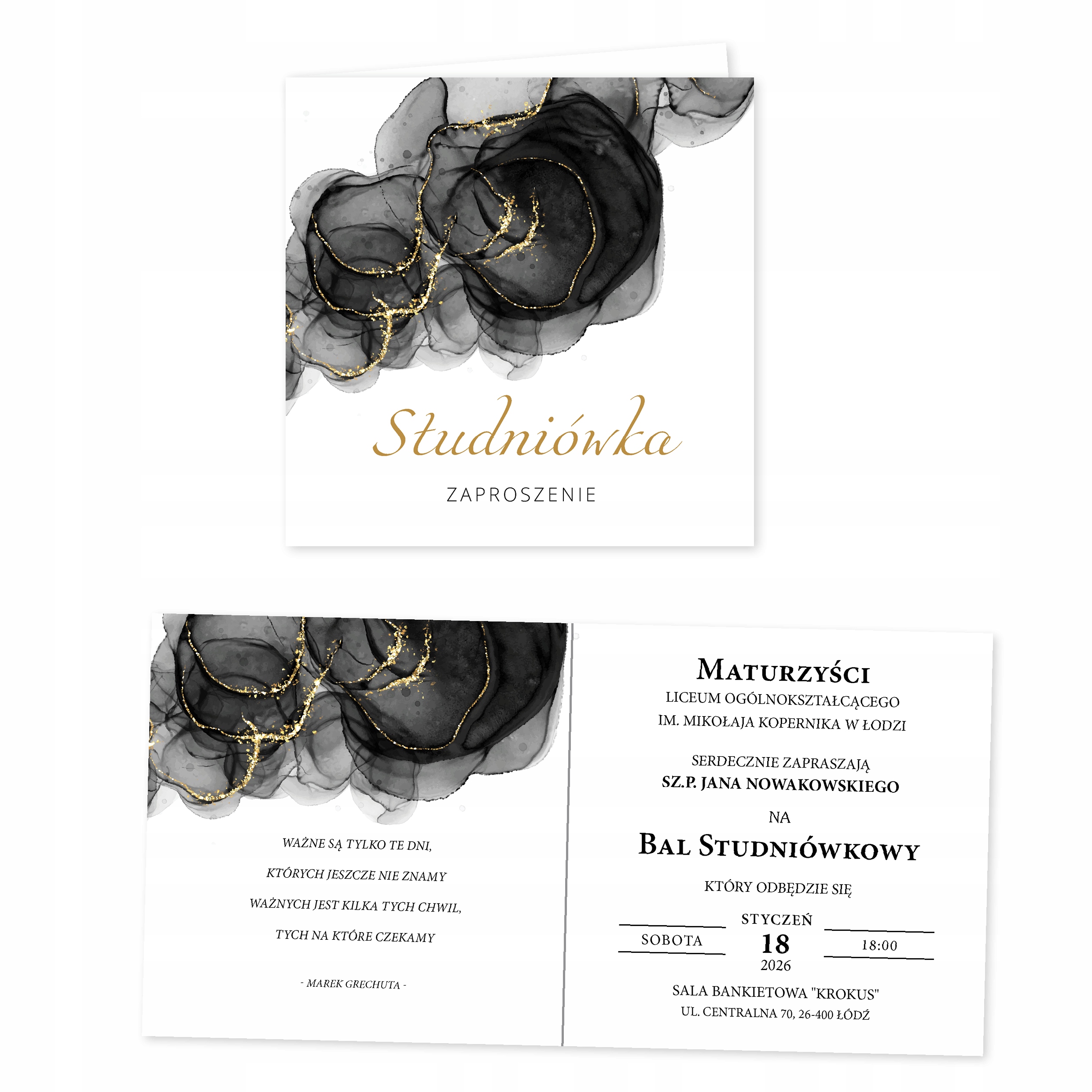 Класичні, вишукані та повністю персоналізовані запрошення, які красиво сповіщатимуть про ваш великий випускний вечір. Мінімалістичний дизайн і високоякісні матеріали роблять кожне запрошення унікальним і чудовим як у руках, так і на сувенірних фотографіях.