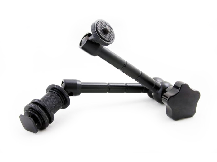 Рука має довжину 29 см (11 дюймів) і може приймати будь-яке положення в сферичному розташуванні. Завдяки цьому всі прикріплені аксесуари можна дуже легко розмістити в будь-якому положенні. Просто поверніть ручку, щоб послабити всі ручки. Потім встановлюємо потрібне положення руки і закручуємо ручку. Задане положення руки буде збережено, і воно буде повністю стабільним.