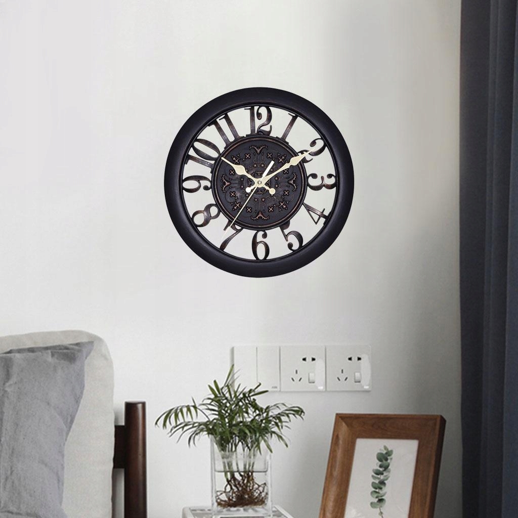 11-дюймові настінні годинники в ретро, старовинних, тихих, не тикають акумулятор, чорний