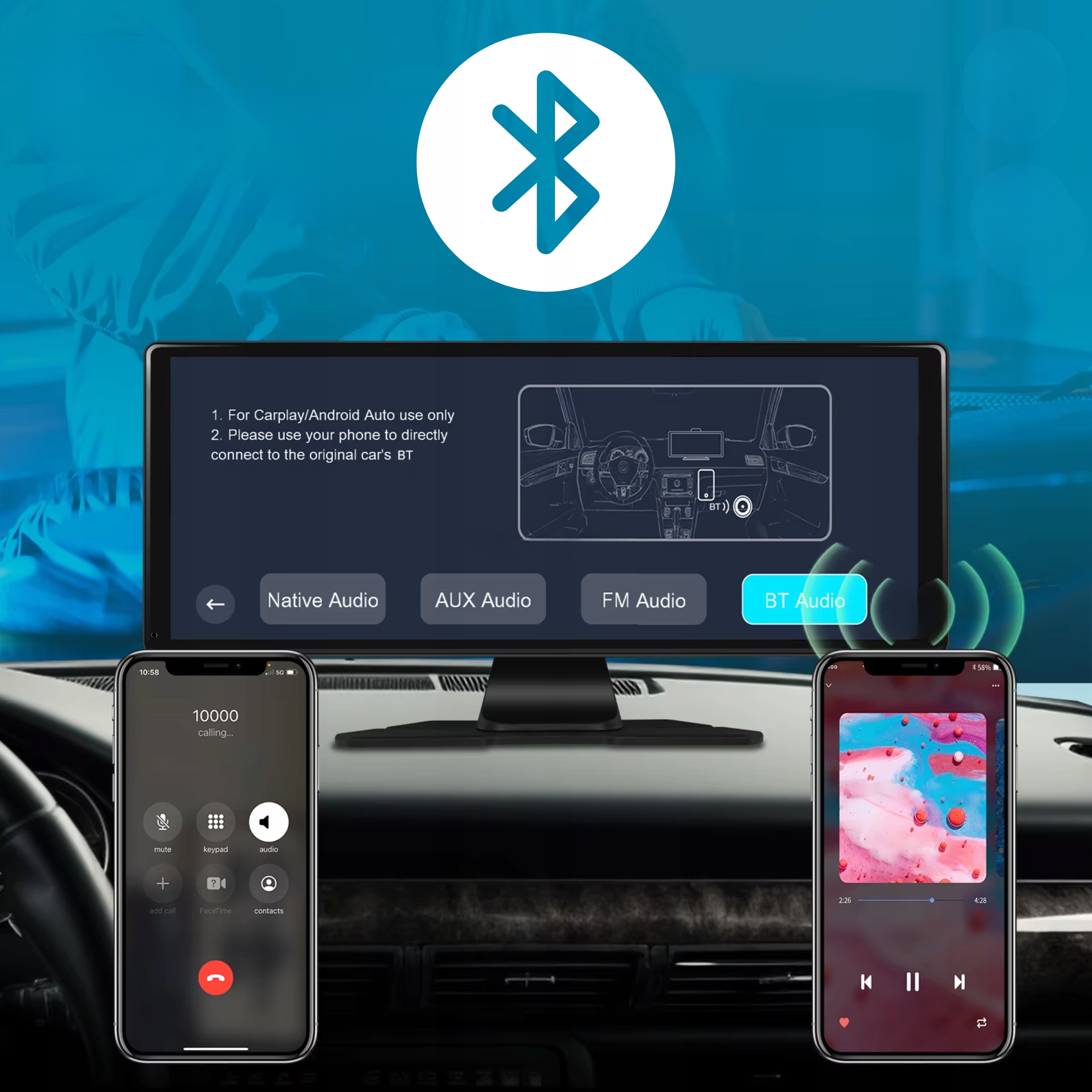 Просто підключіться до смартфона для доступу до навігації на карті, ввімкнення телефонних дзвінків, навігації, відтворення музики за допомогою Siri або Google Assistant. Зробіть вас безпечнішими, ніж дивитись на телефон під час руху.