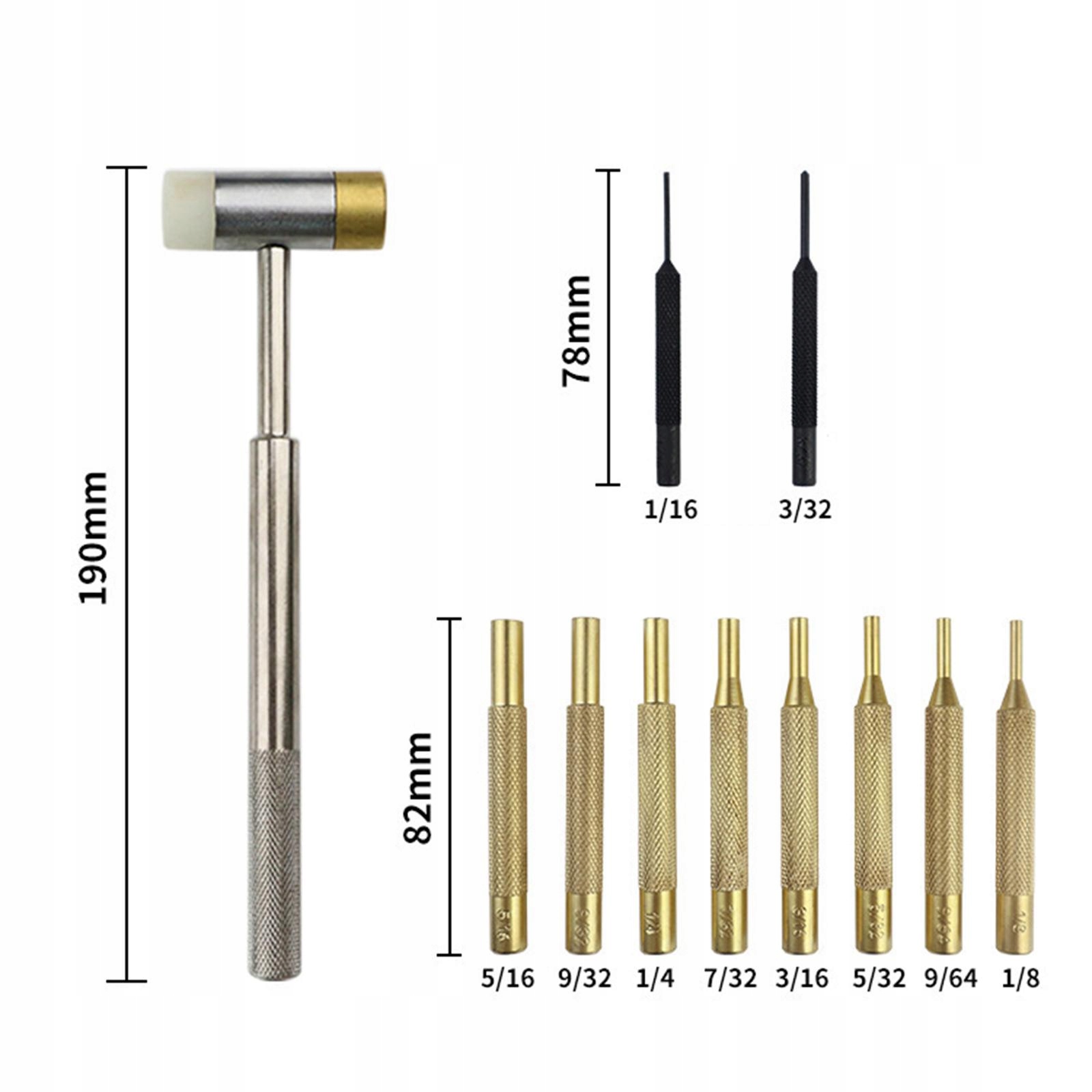 Розмір: молоток 190 мм/7,48 дюйма, циліндричний пуансон 82 мм/ 3,23 дюйма, чорний циліндричний пуансон становить 78 мм/3,07 дюйма