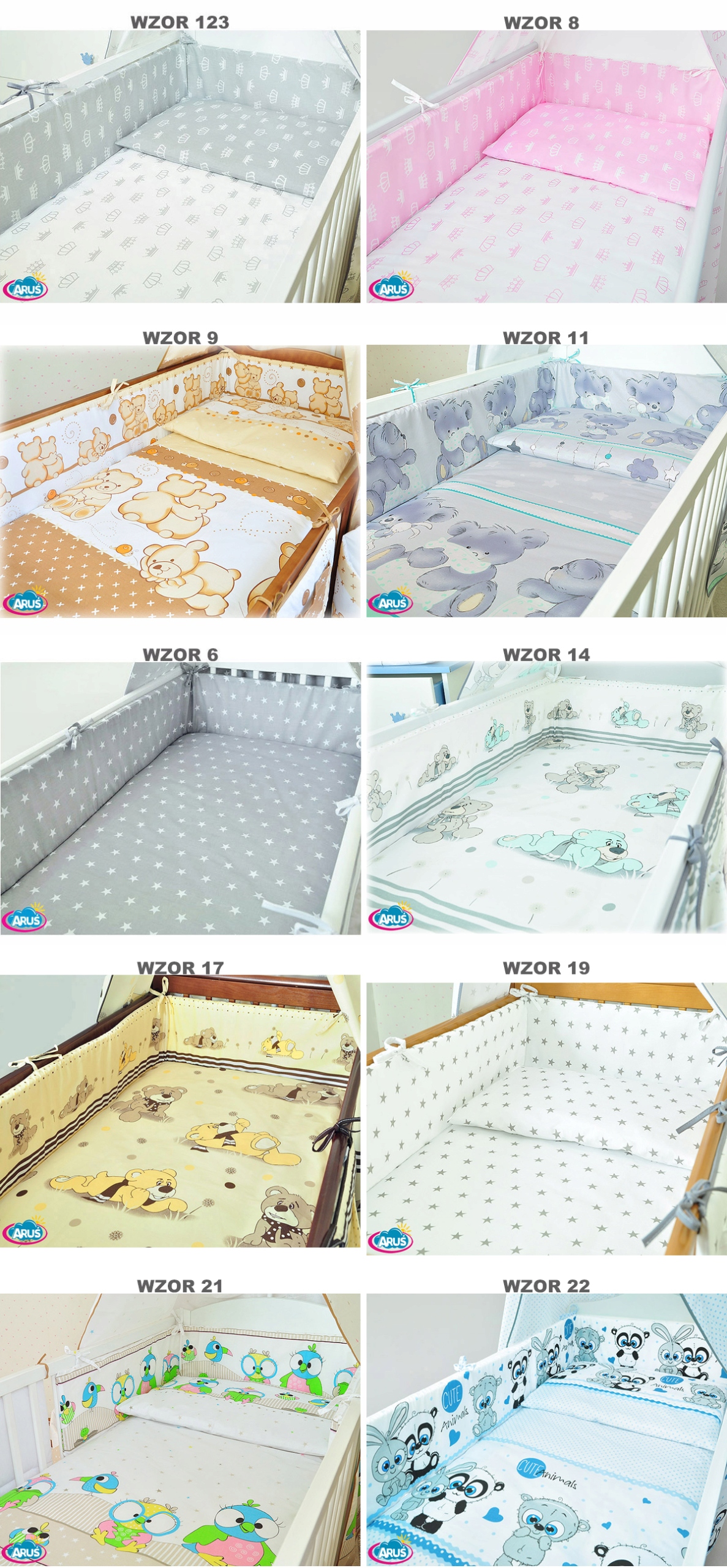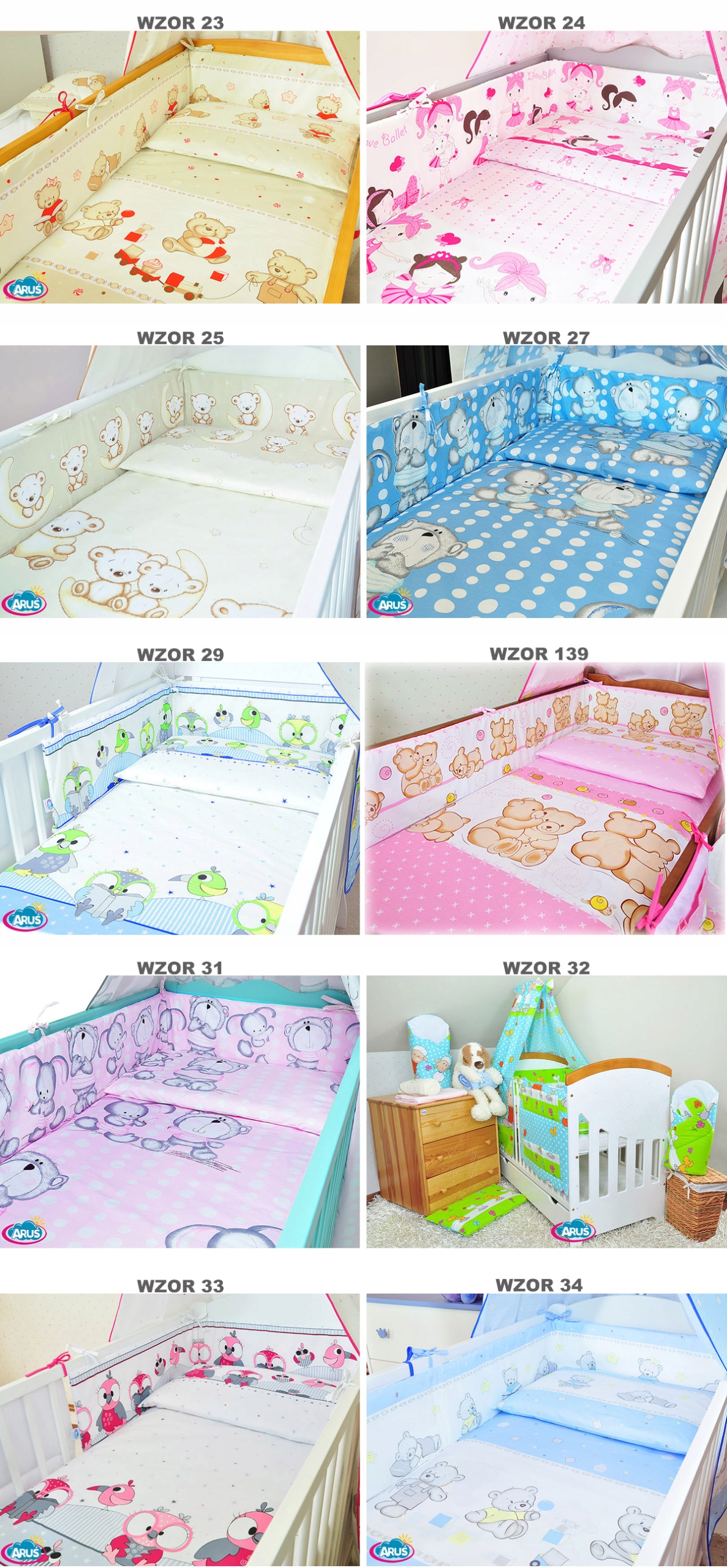10. Сповивання дитини- необхідне при виписці з пологового будинку і в перший період життя малюка. Він м'який, теплий, забезпечує безпеку і спокійний сон. Розмір конуса орієнтовно 75*75 см, наповнювач - високоворсистий флізелін. Покривало — кольорова бавовняна тканина з таким же малюнком, як і постільна білизна. Пелена прошита, щоб наповнювач не зміщувався. Пелену також можна використовувати як ковдру для коляски або як пеленальний килимок, коли дитина його переросте.