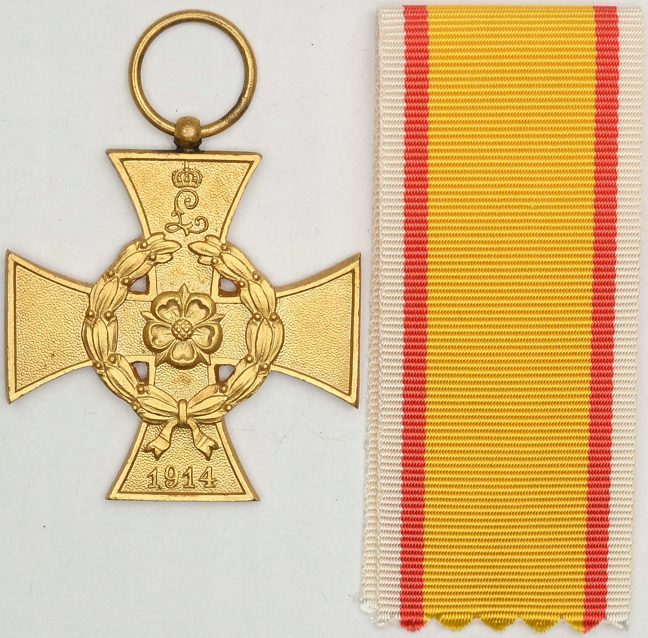 - Опис: прикраса, створена в 1914 році принцом Леопольдом IV. Хрестом на стрічці для ветеранів нагороджували офіцерів, сержантів і солдатів.