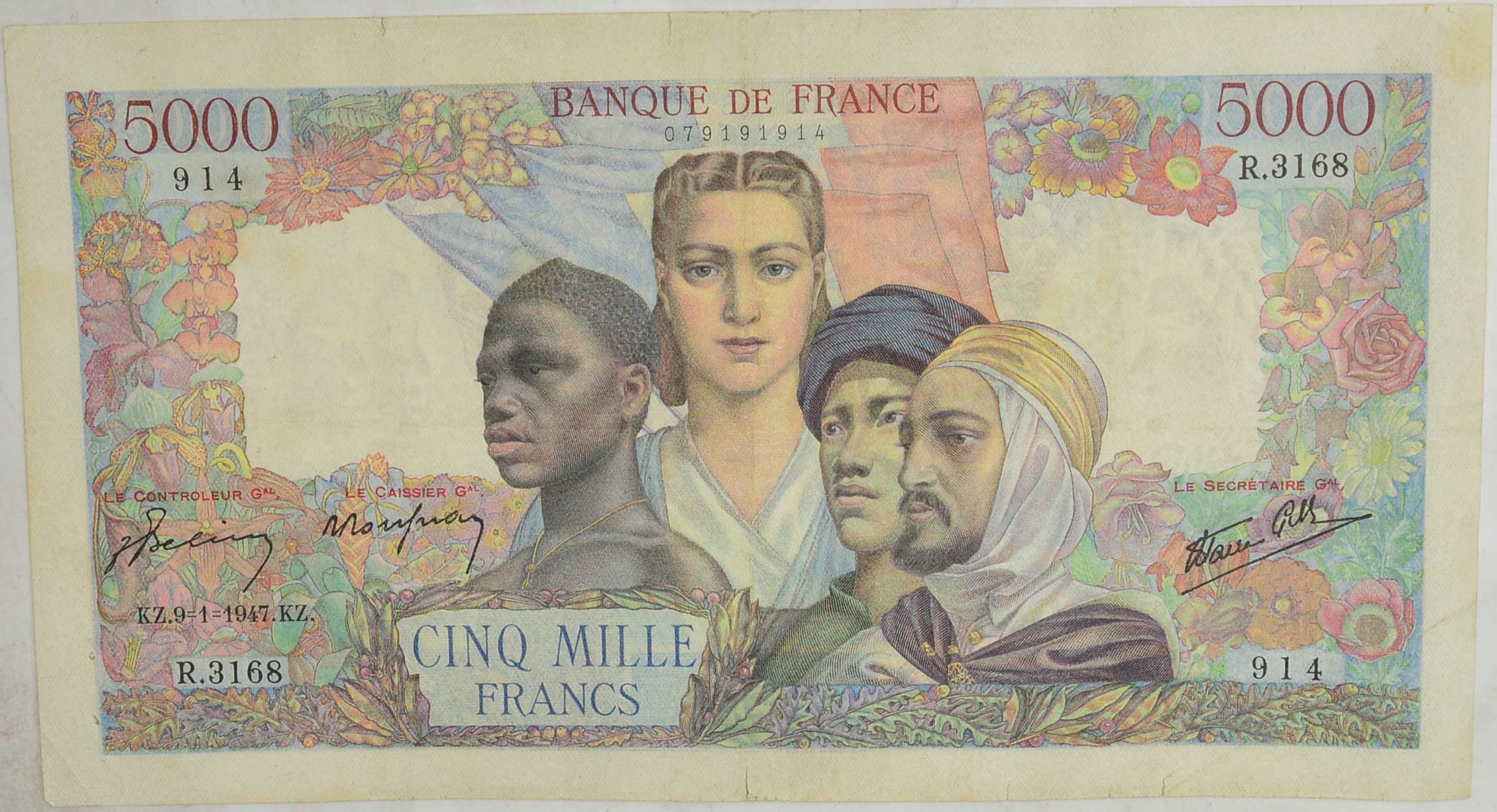 11.db.Francja , 5000 франків 1947, P.103.c , St.3+