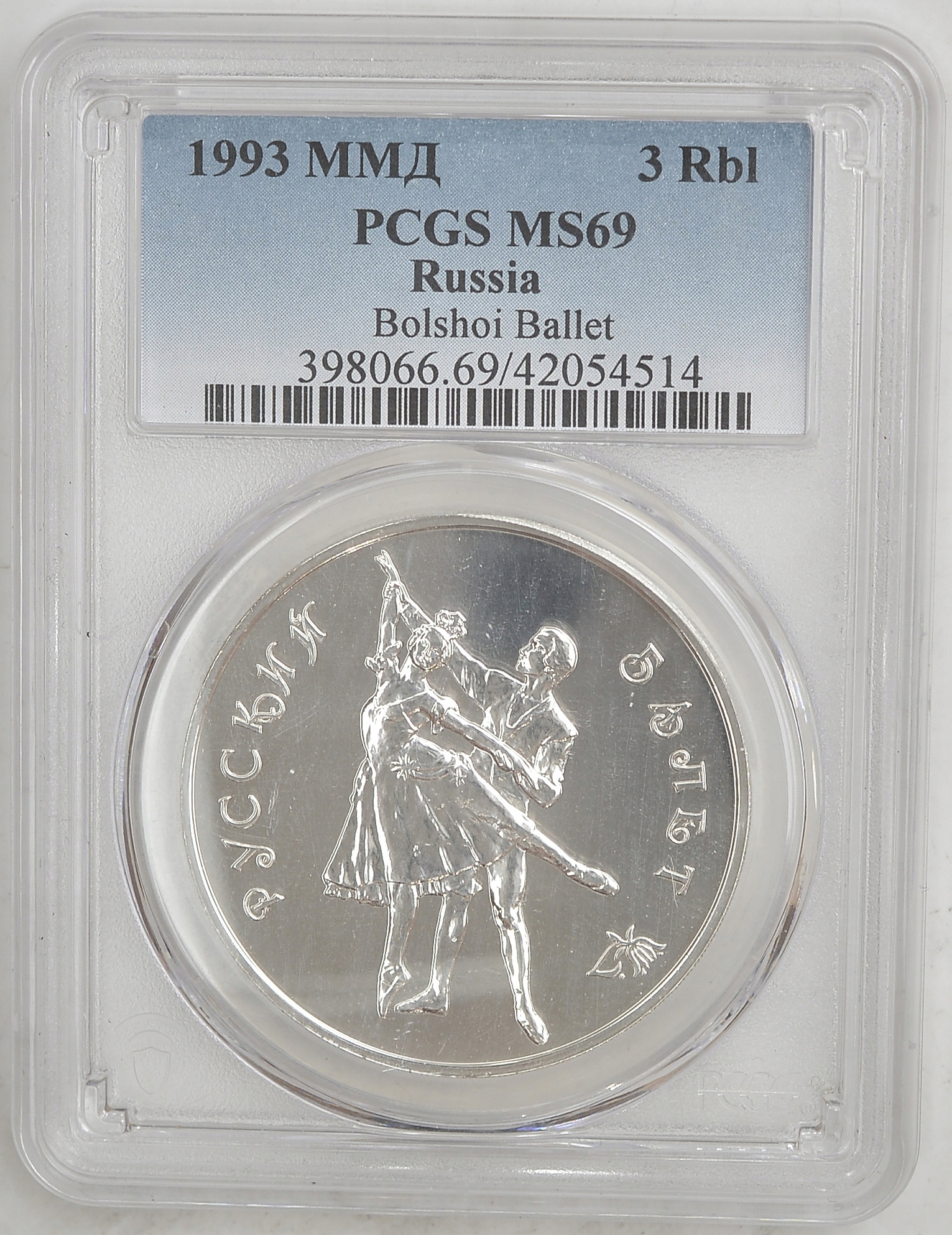 11.db.ROSJA , 3 РУБЛІ 1993 РОСІЙСЬКИЙ БАЛЕТ PCGS MS69