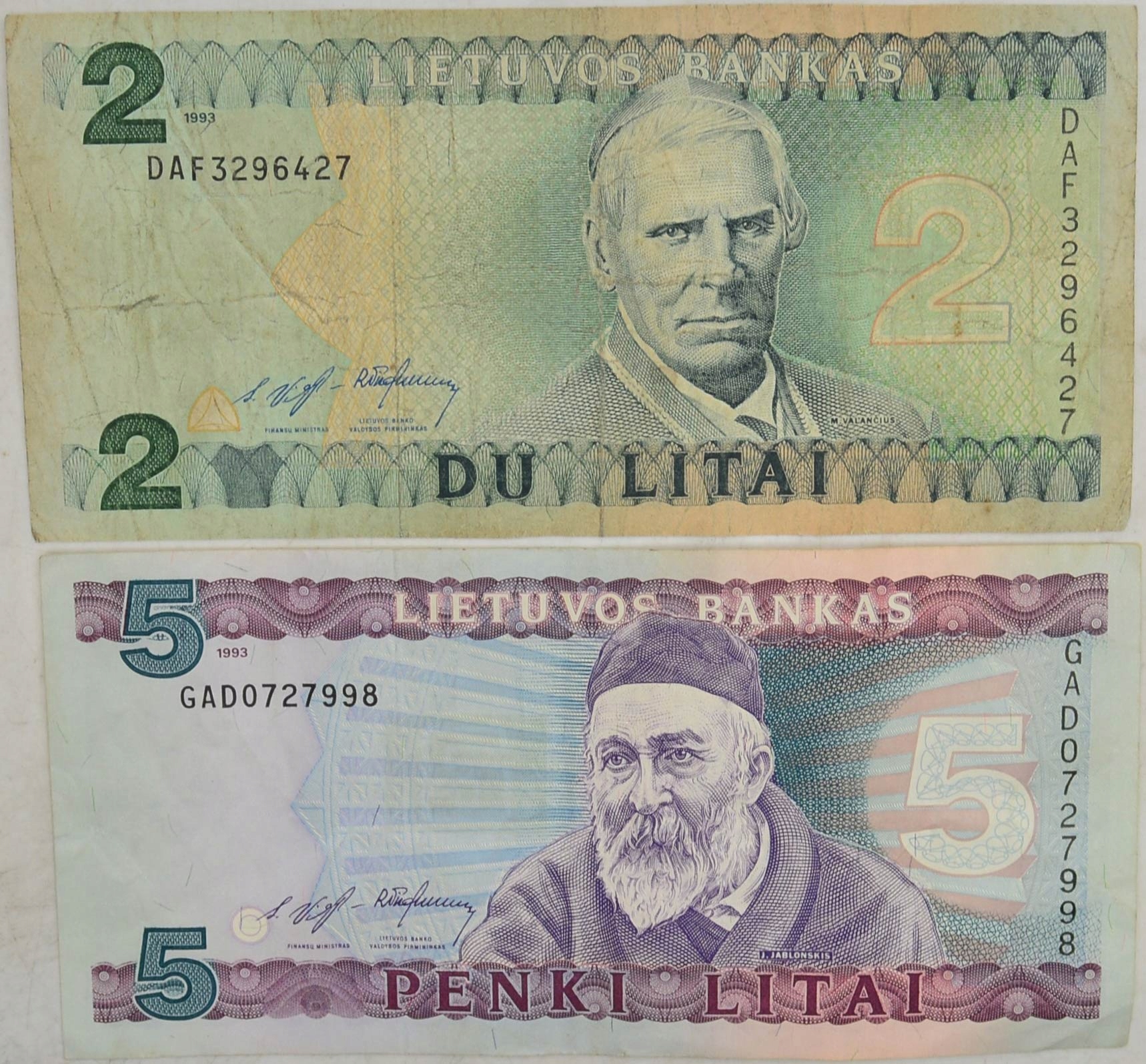 - Опис: Набір містить банкноти номіналом: 2 літи, 5 літів - обидві з 1993 року