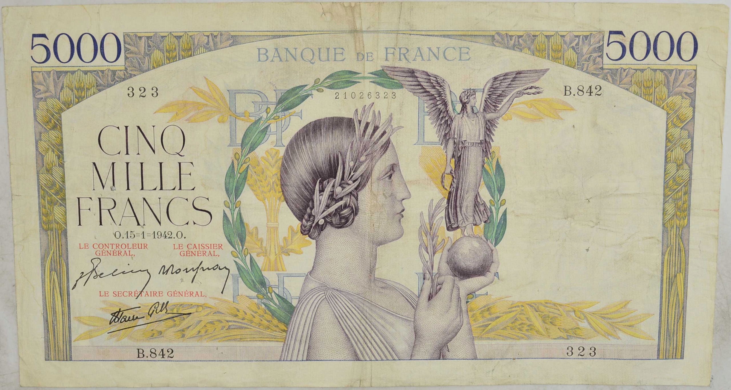 11.Франція, 5000 франків 15.01.1942, St.3+