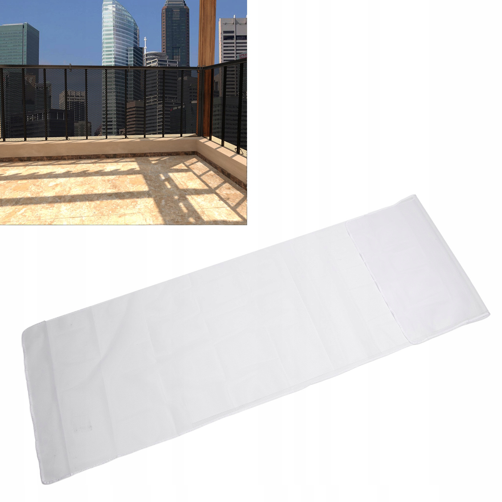 2. ПРОСТЕ ВСТАНОВЛЕННЯ: Використовуйте пластикові затискачі для підвішування, щоб пройти через отвори сітки та прикріпити її до поручня, або скористайтеся стандартною мотузкою, щоб прикріпити сітку до поручня, щоб утримувати сітку на місці. Якщо поручень довгий, ви можете прикріпити 2 або більше сіток, використовуючи той самий спосіб монтажу. Якщо поручень коротший, сітку можна скласти та встановити.