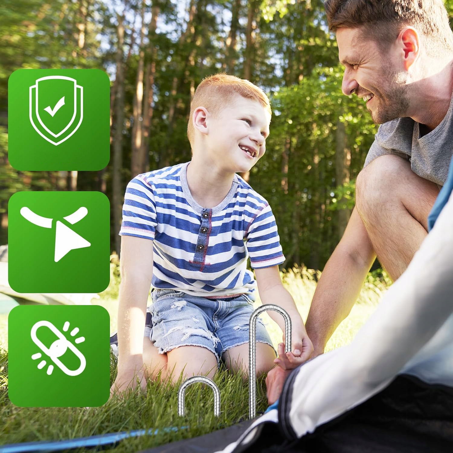 Грунтові анкери виготовлені з міцної сталі. Стійкий наземний якір ідеально підходить для батутів, гойдалок, гірок, огорож і садових прикрас. Також підійде як доповнення до намету, тенту або альтанки. Ці кілочки роблять намет стійким до атмосферних впливів, а також роблять його більш стійким і безпечним.