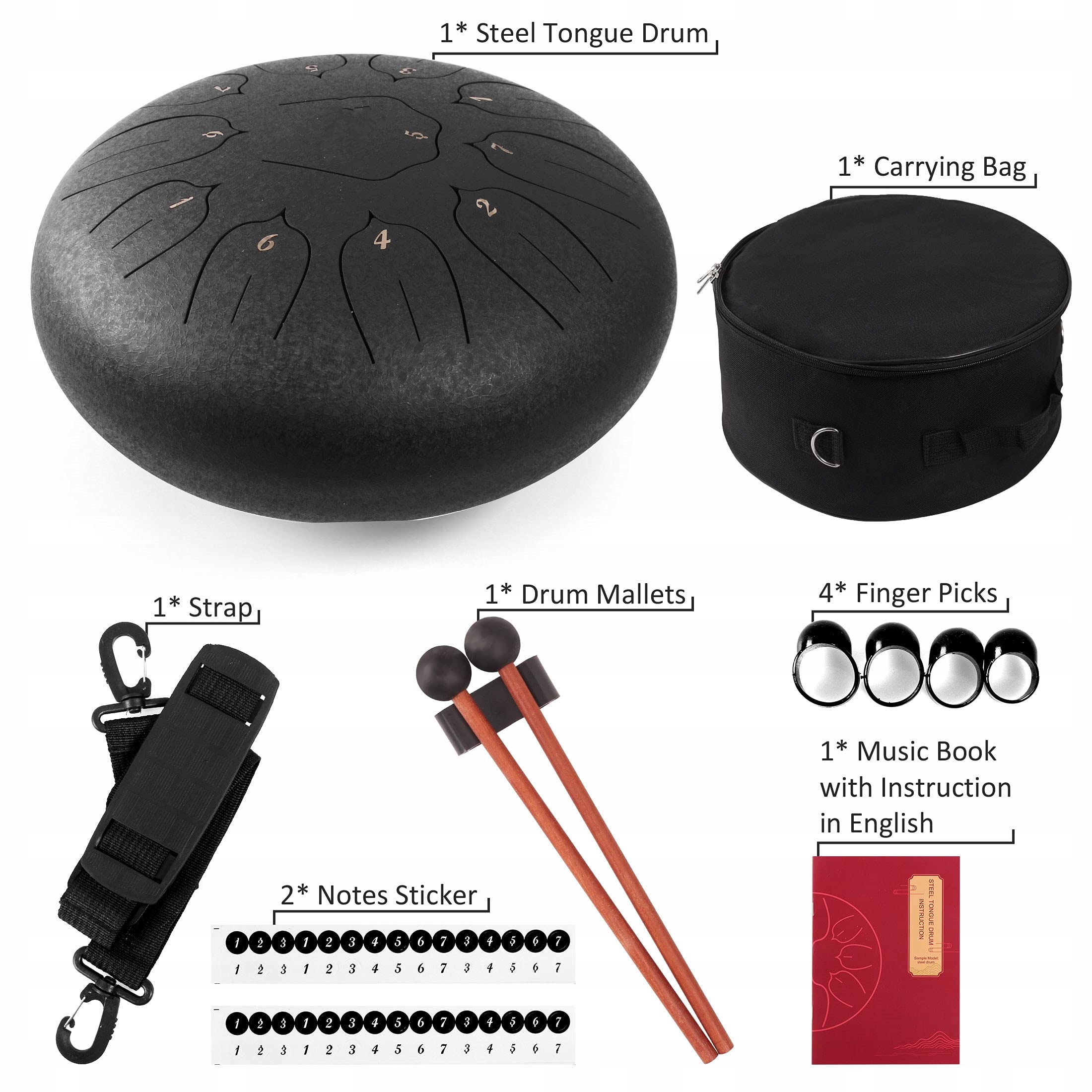 Барабан зі сталевим язичком діаметром 12 дюймів і 11 тонами C є ідеальним ударним інструментом для любителів музики. Виготовлений вручну з високоякісної сталі та титану, він забезпечує чудову якість звуку та довговічність. Завдяки широкому діапазону тонів і простоті відтворення навіть новачки зможуть насолодитися прекрасними мелодіями. Пакет включає барабан, палички, медіатори, музичні наклейки та сумку для перенесення, ідеальну для домашнього використання та подорожей.