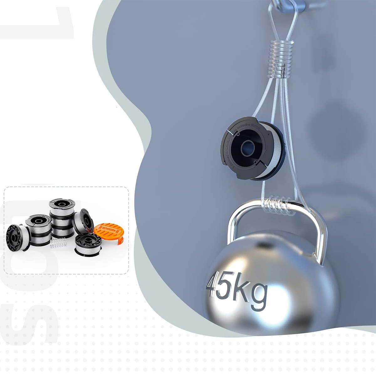 Стійкість до стирання – волосінь для різання виготовлена з покращеного нейлоново-поліамідного матеріалу з міцністю на розрив понад 45 кг, який на 30% міцніший, ніж інші марки, і служить довше.