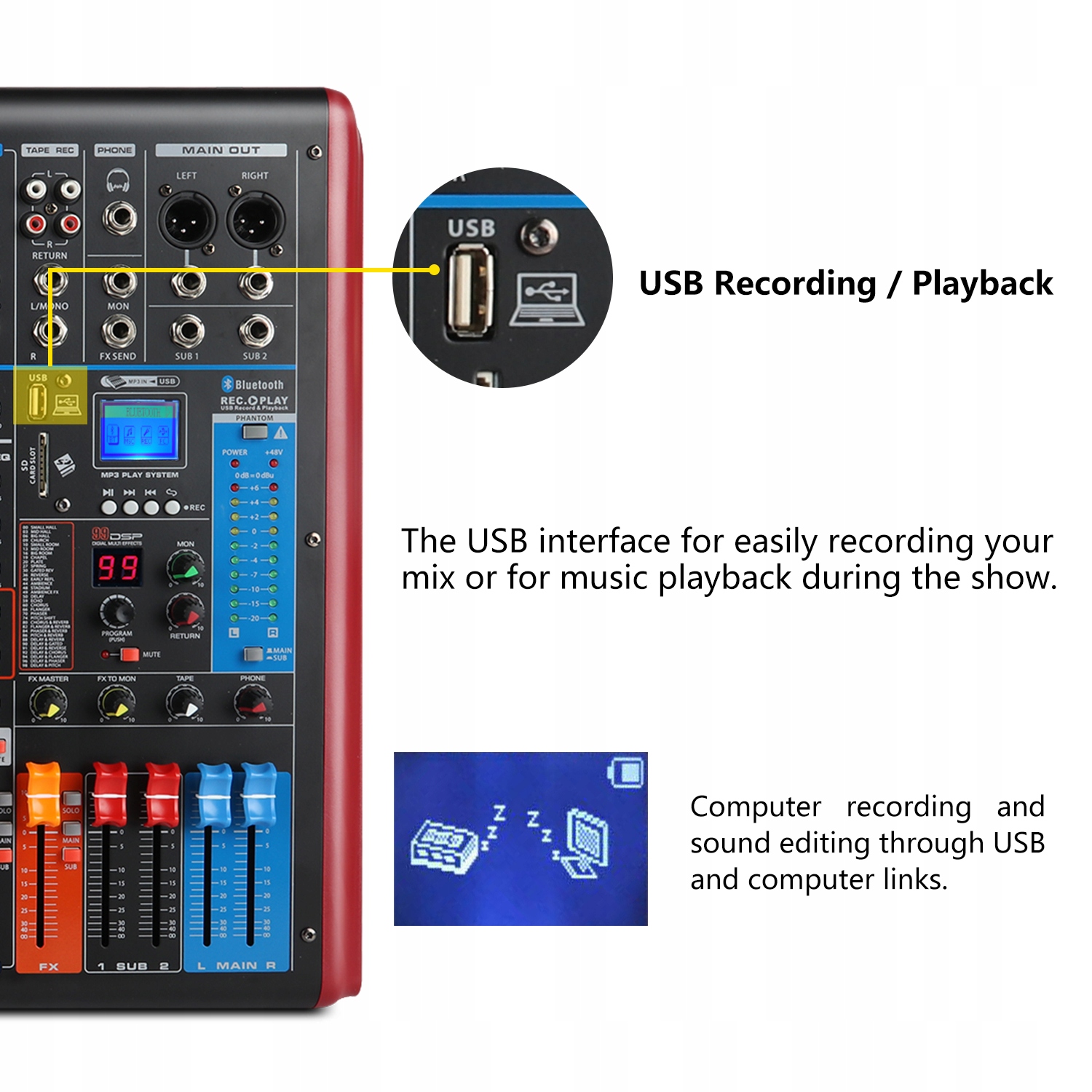 7. Вбудоване відтворення Bluetooth, можна підключати зовнішні пристрої, такі як мобільні телефони, комп’ютери тощо. З інтерфейсом USB, підтримує прямий вхід на диск MP3/U та інші пристрої, вбудований MP3-плеєр і рекордер, підтримує формат: MP3/WAV/ WMA, запис на комп'ютер і редагування аудіо через USB і підключення до комп'ютера. РК-дисплей високої роздільної здатності. Підтримка функції FM-радіо, функції ІЧ-пульта дистанційного керування, підтримка карт SD/TF тощо.