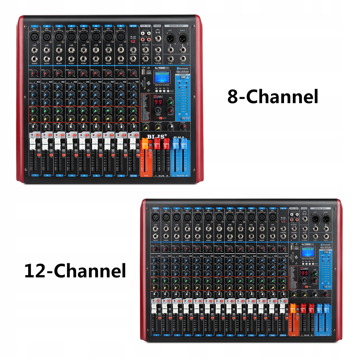 1. 12-канальний аудіомікшер із низьким рівнем шуму. Оснащений позолоченими роз’ємами XLR і збалансованим лінійним інтерфейсом із точками вставки. Збалансований вхід XLR (Canon), можна під’єднати стандартний роз’єм Canon, кожен вхідний роз’єм для мікрофона має адаптер живлення Mirage +48 В.