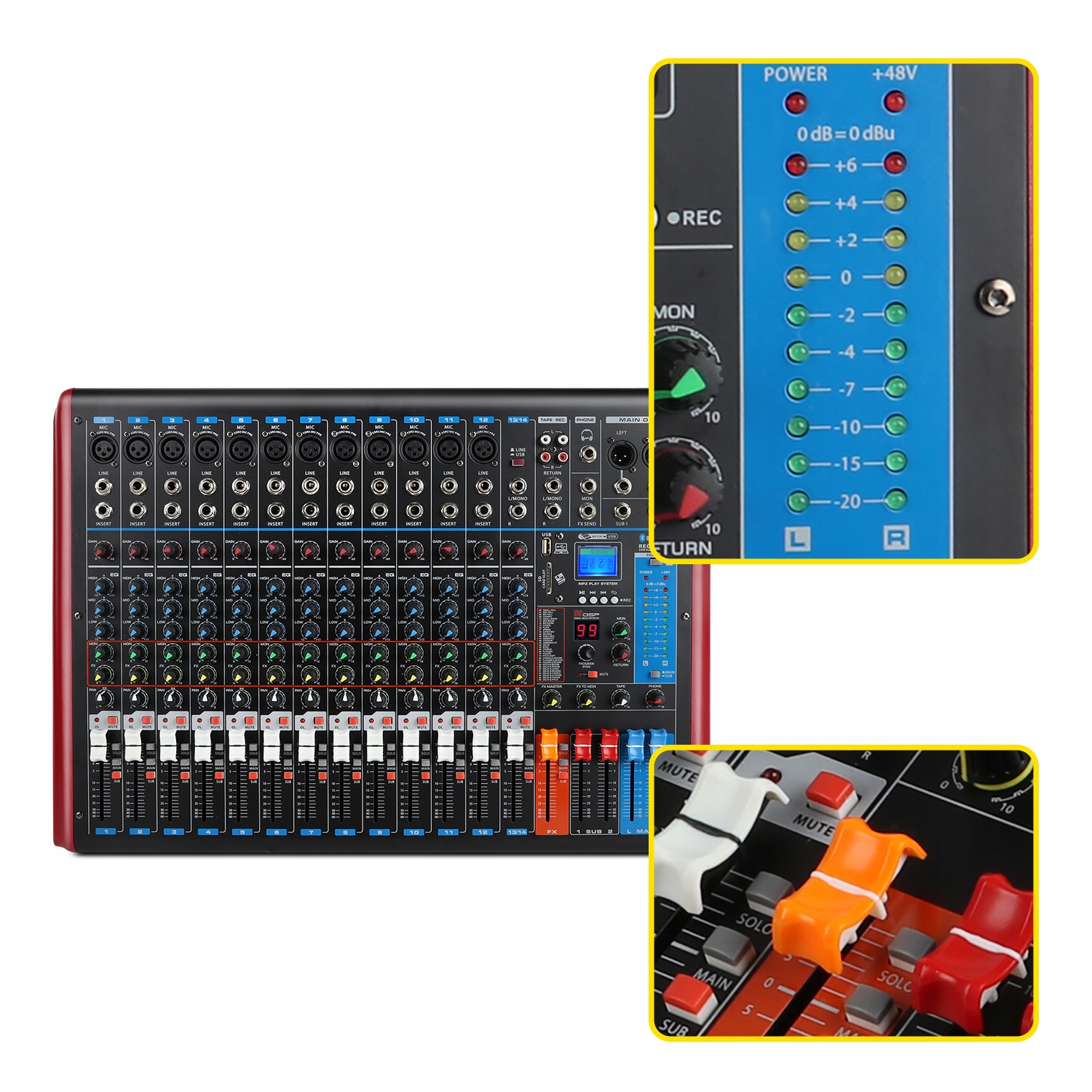 12 КАНАЛЬНИЙ СТУДІЙНИЙ АУДІОМІКШЕР 230В USB Bluetooth професійний