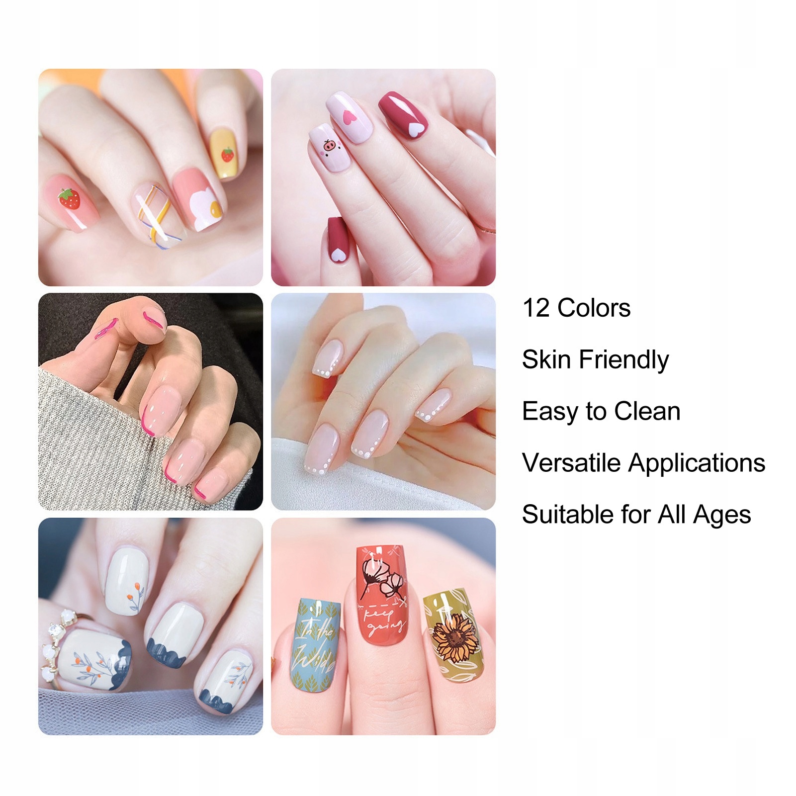 5, підходить для будь-якого віку: цей набір підходить для будь-якого віку, як для дорослих, так і для дітей. Це ідеальний інструмент для вираження креативності та додання вашим нігтям індивідуального характеру.