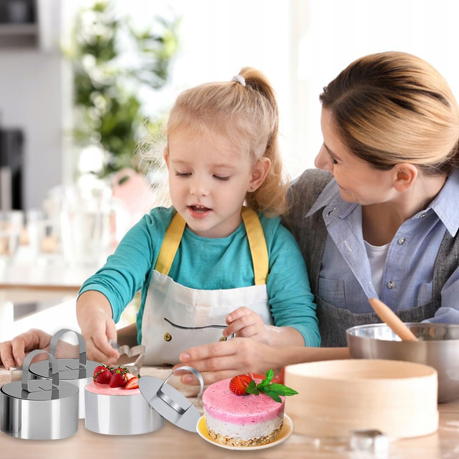 🎂🎂 Простий у використанні/чистці - Набір кілець для торта з нержавіючої сталі має гладку поверхню, що дозволяє легко видаляти мус з тортів і захищає весь торт від пошкоджень. Після використання його можна мити вручну або в посудомийній машині.