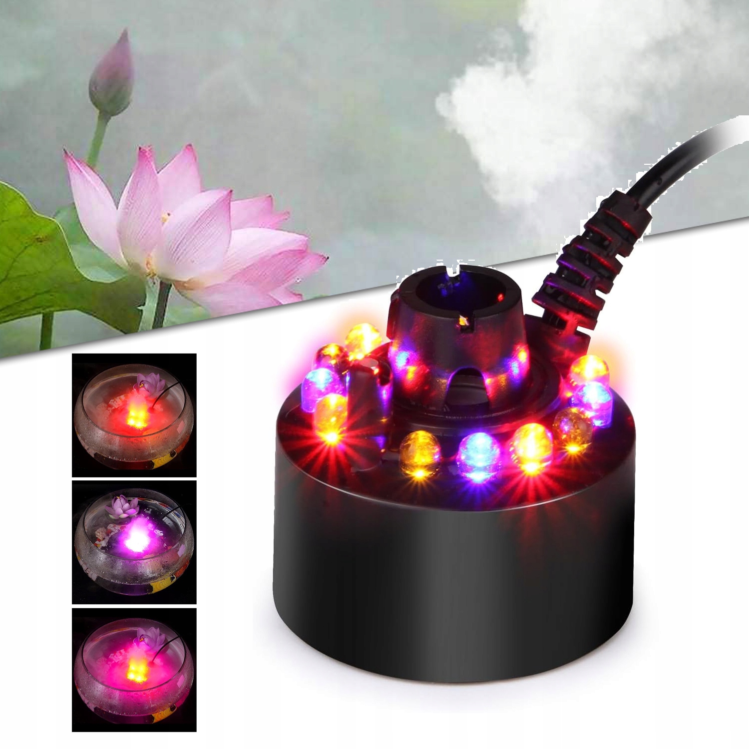 💖💖💖【12 світлодіодів】 Завдяки 12 світлодіодним лампочкам, які змінюють колір, додайте приголомшливого ефекту туману до вашого ставка чи резервуара для води. Особливо ідеально підходить для Хеллоуїна та інших свят.