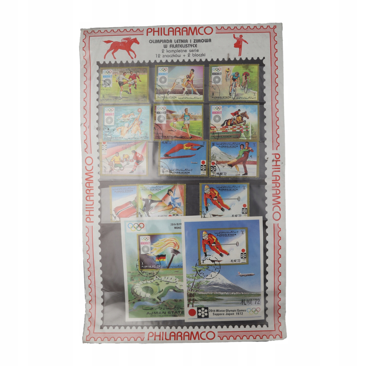 Набір із 12 марок + 2 блоки Philaramco – літні та зимові Олімпійські ігри 1972 р. Розміри; 33 х 21 см. Рекомендую колекціонерам