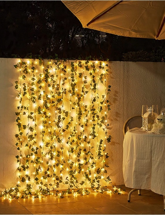 12-метровий балкон зі світлодіодним світлодіодним світлодіодним світлодіодним балконом із штучним плющом