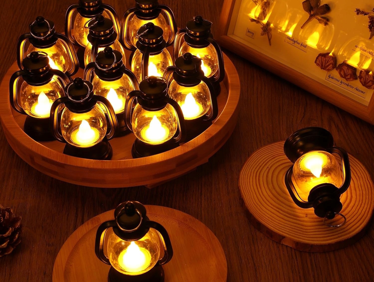 12 міні-ліхтариків у вінтажному стилі, масло, підвісний масляний ліхтар, світлодіод