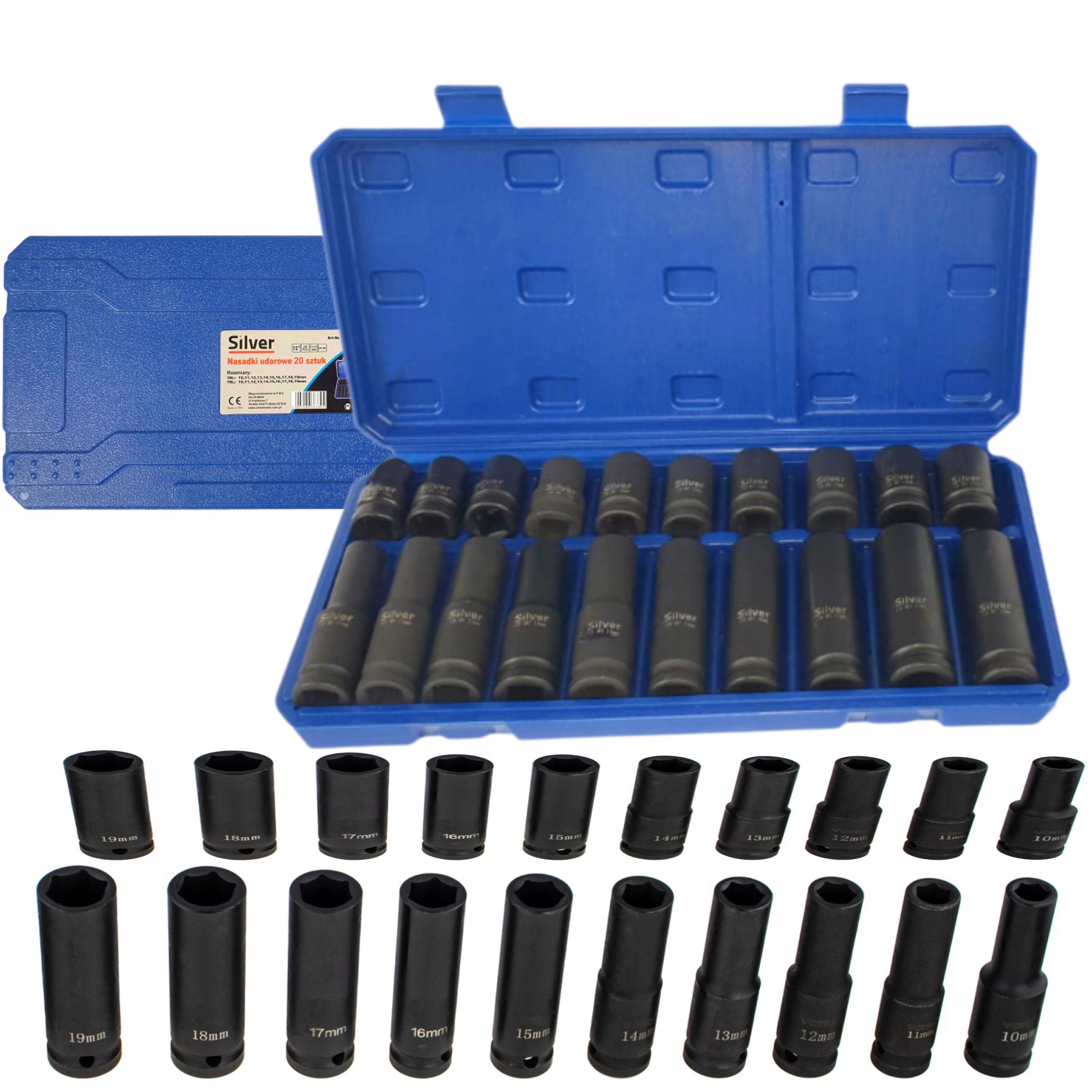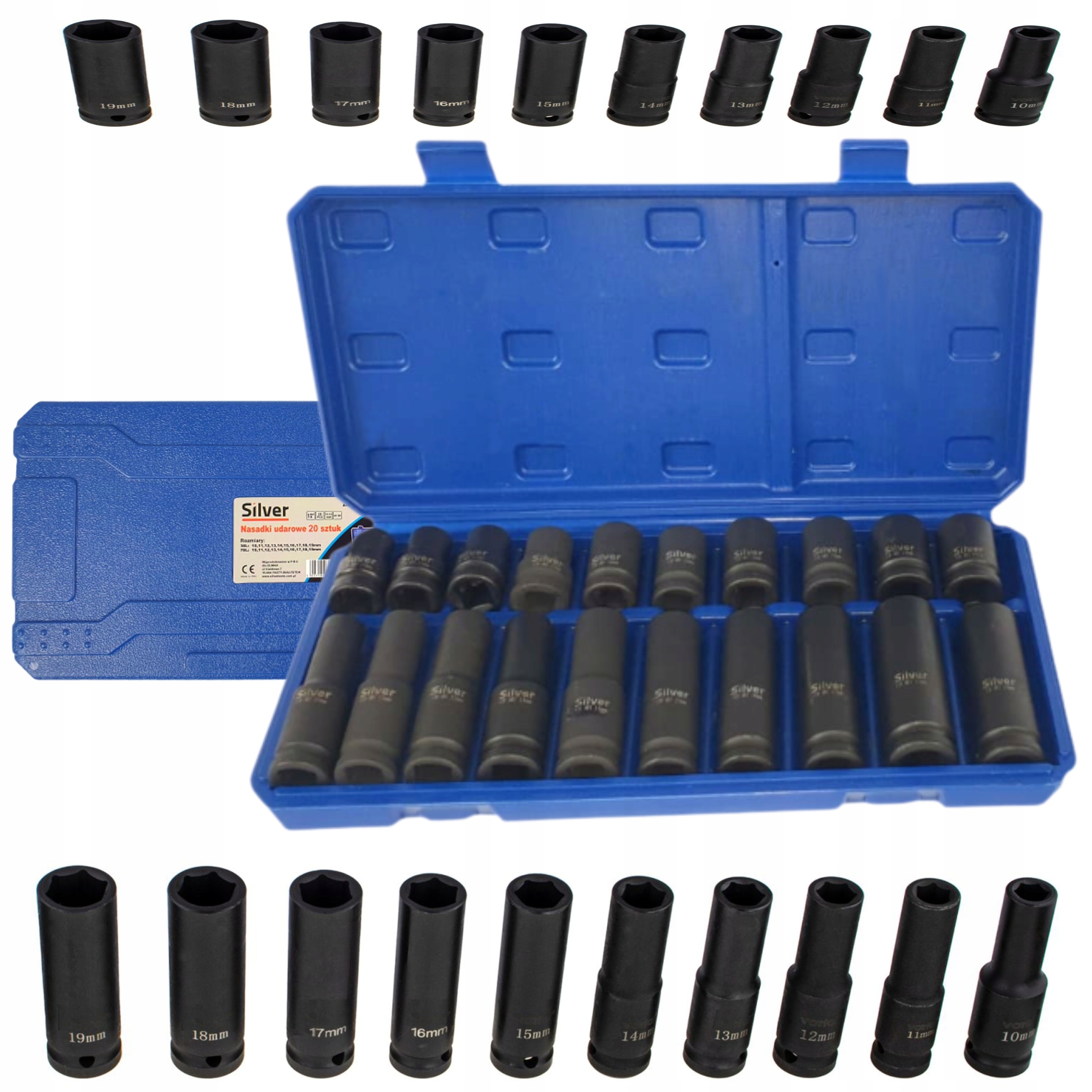 НАБІР КОРОТКИХ ТА ДОВГИХ УДАРНИХ ГНІЗДІВ 1/2" 10-19ММ