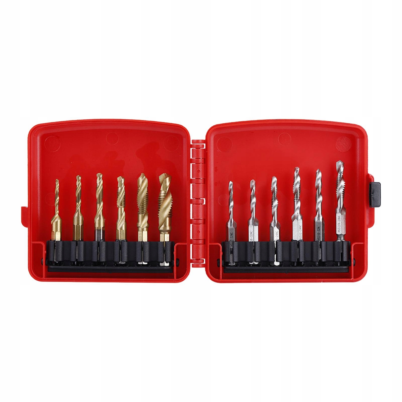 У комплекті: всього 12 частин у двох різних стандартах ( метричний, дюймовий) з червоним корпусом, у якому можна використовувати мітчики для різних різьб.