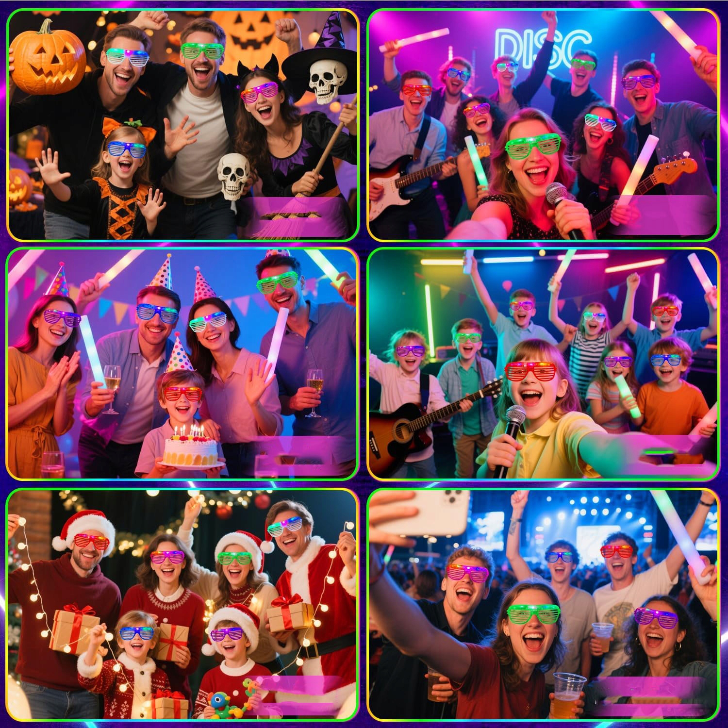 ✨✨【12 світлодіодних окулярів】Ви матимете насичені кольори та достатньо світлодіодних окулярів, які зроблять вашу вечірку яскравішою та цікавішою. Давайте розважимося, випробувавши ці Fun Light up Glasses на вечірці та поділимося щастям із друзями.