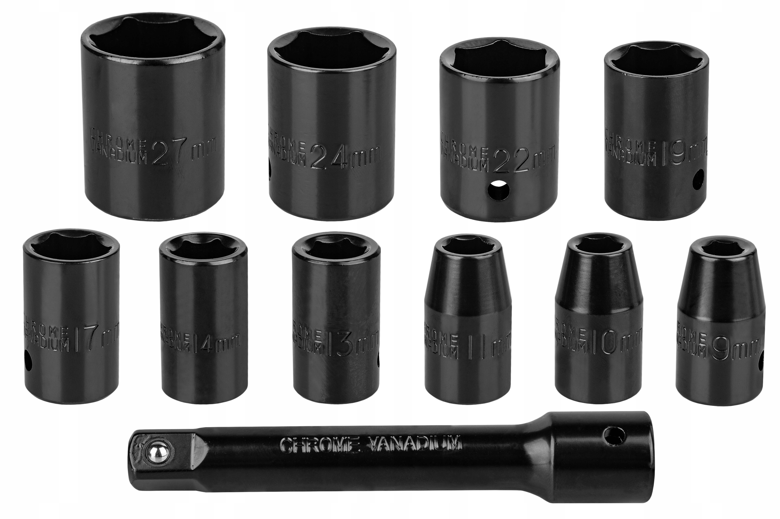 У комплекті з гайковим ключем ви отримуєте набір головок розміром: 9, 10, 11, 13, 14, 17, 19, 22, 24, 27 мм і подовжувач, який дозволить дозволяють дістатися до важкодоступних гвинтів.