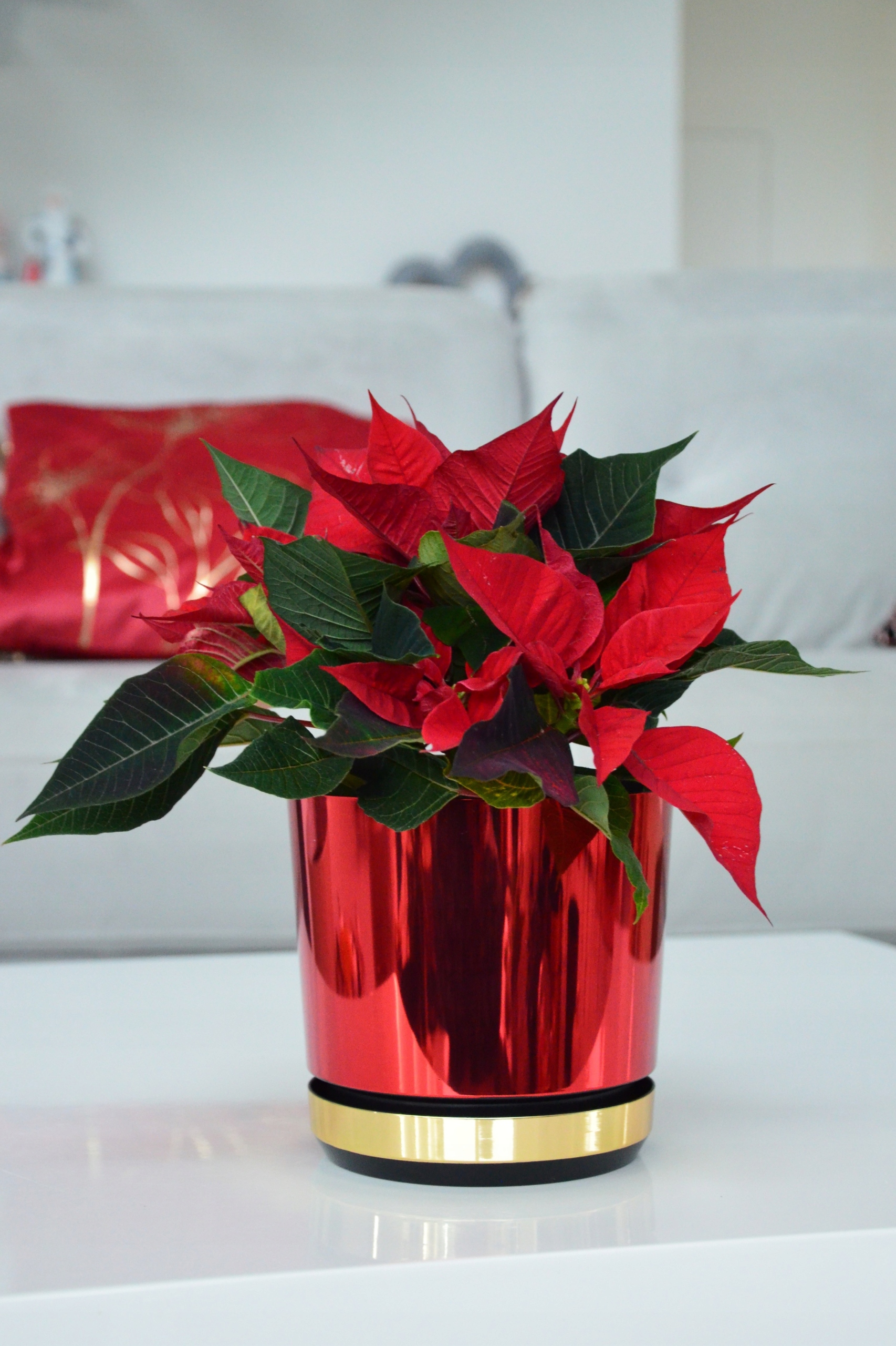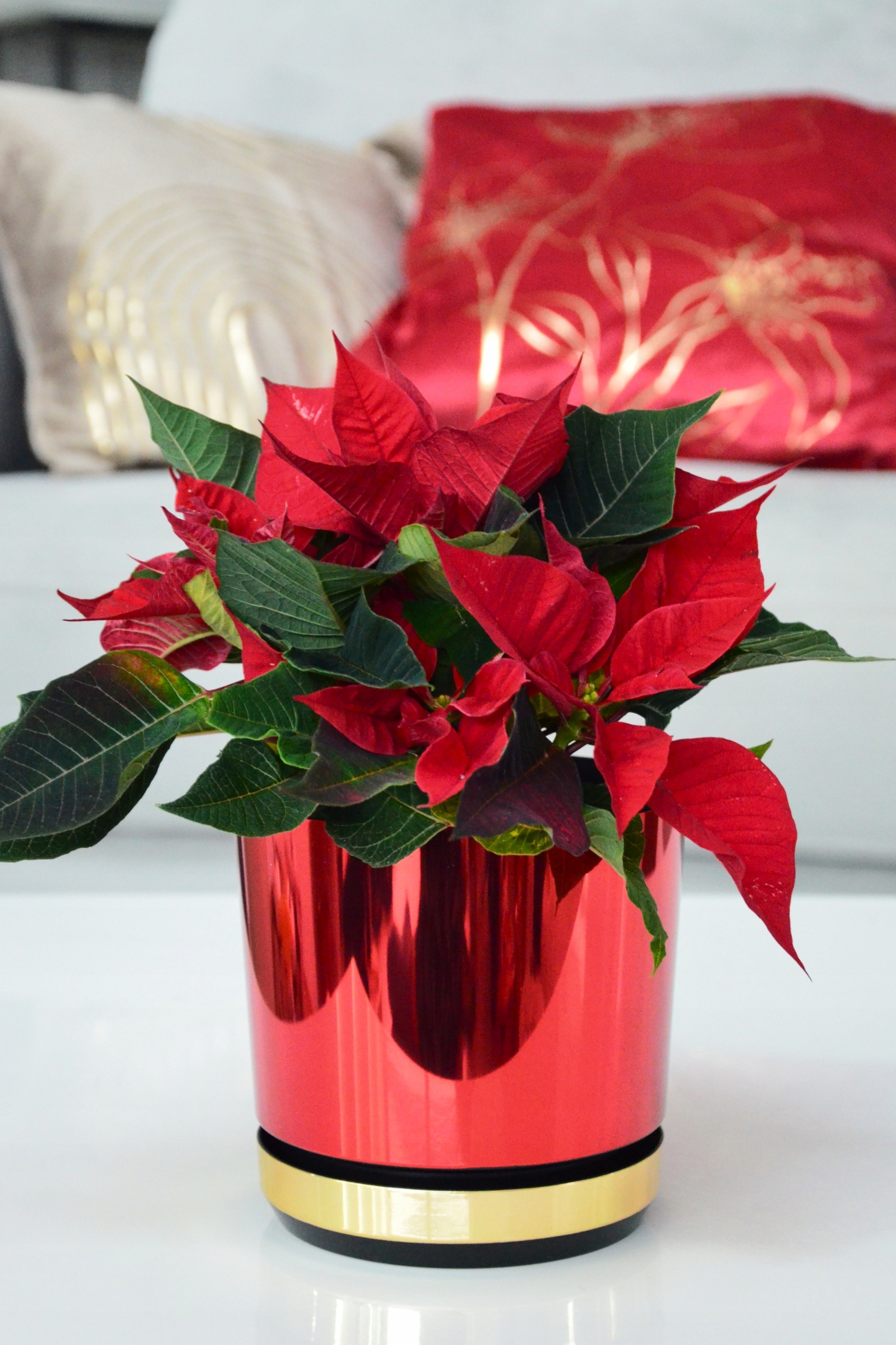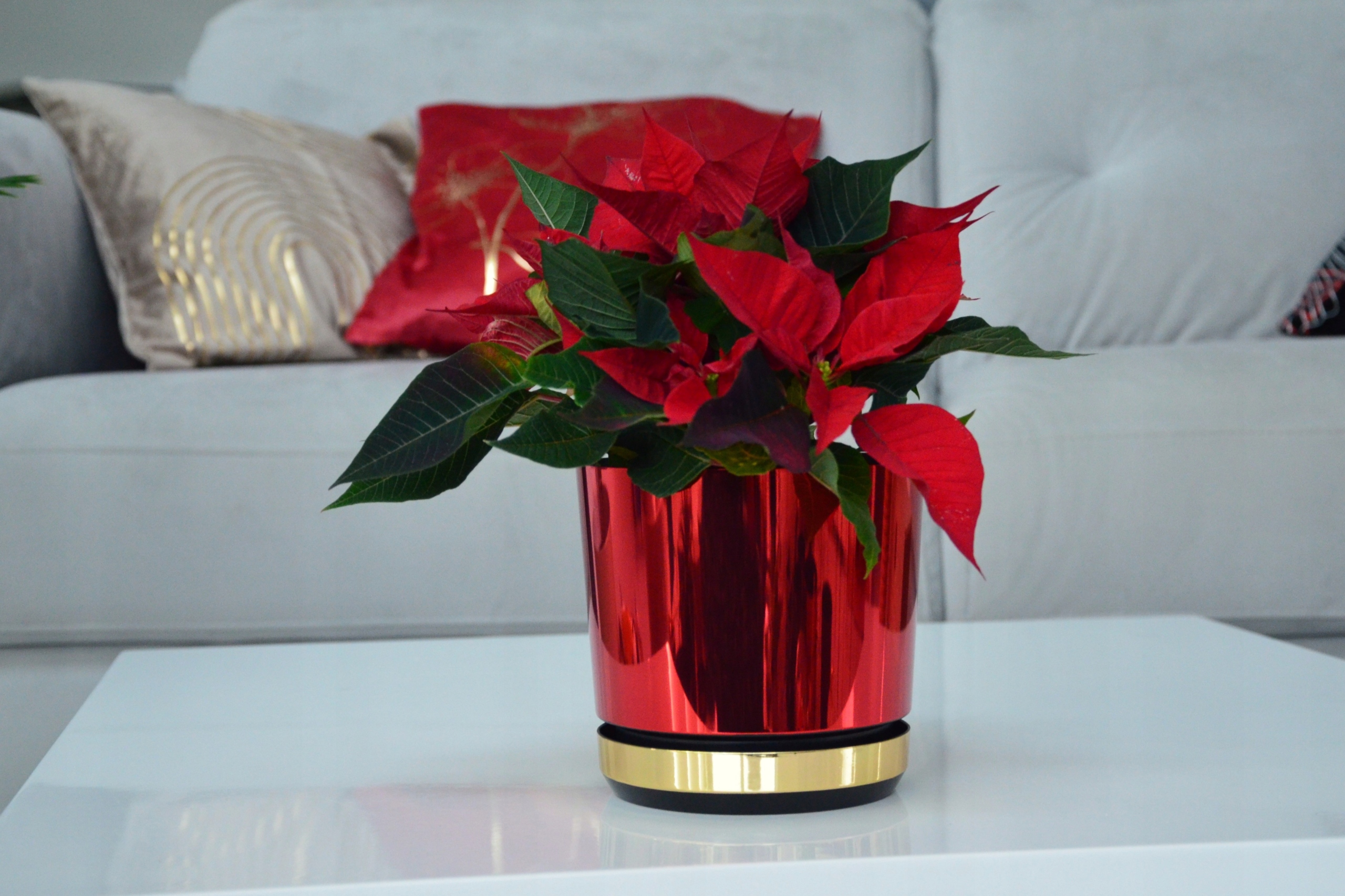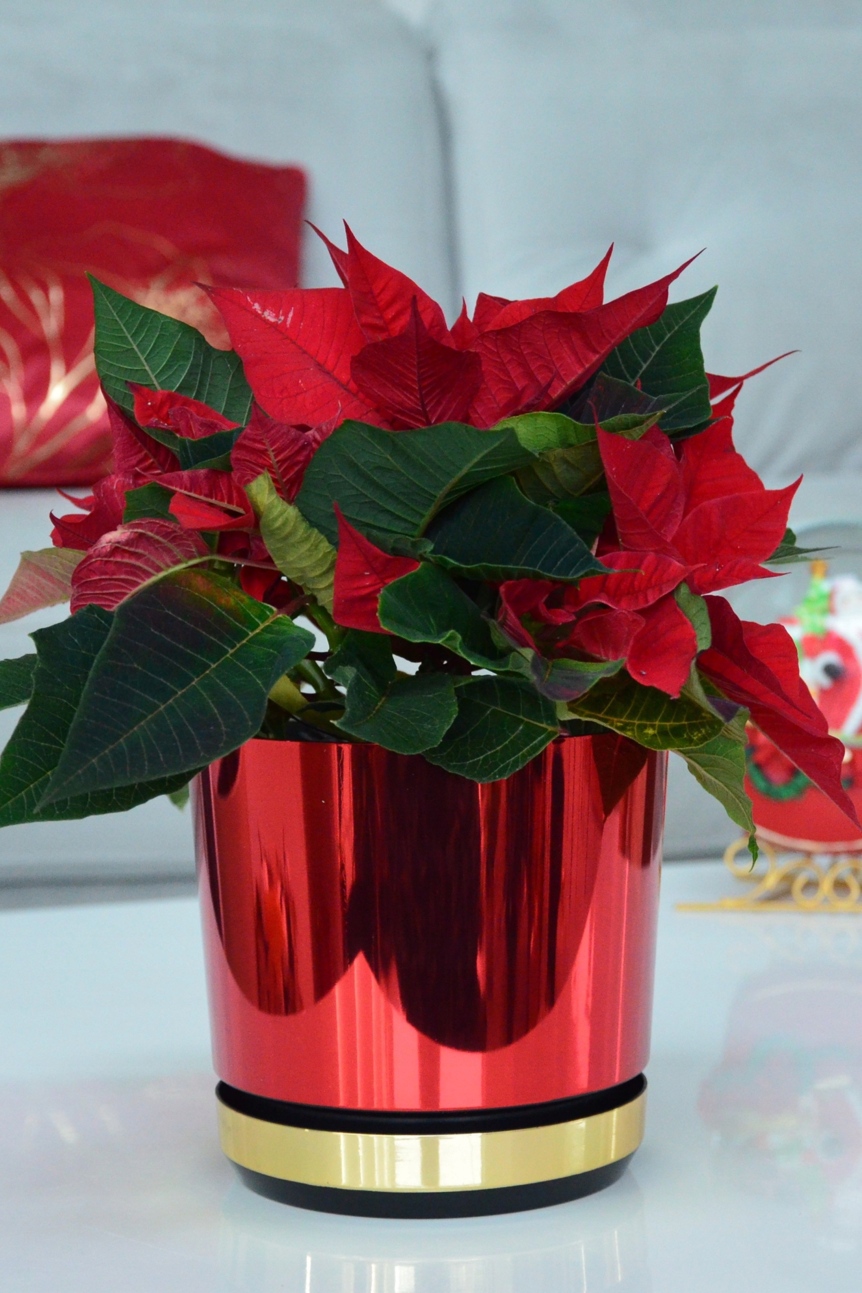 12 Різдвяний квітковий горщик DUO RED - GOLD SHINY Poinsettia Star
