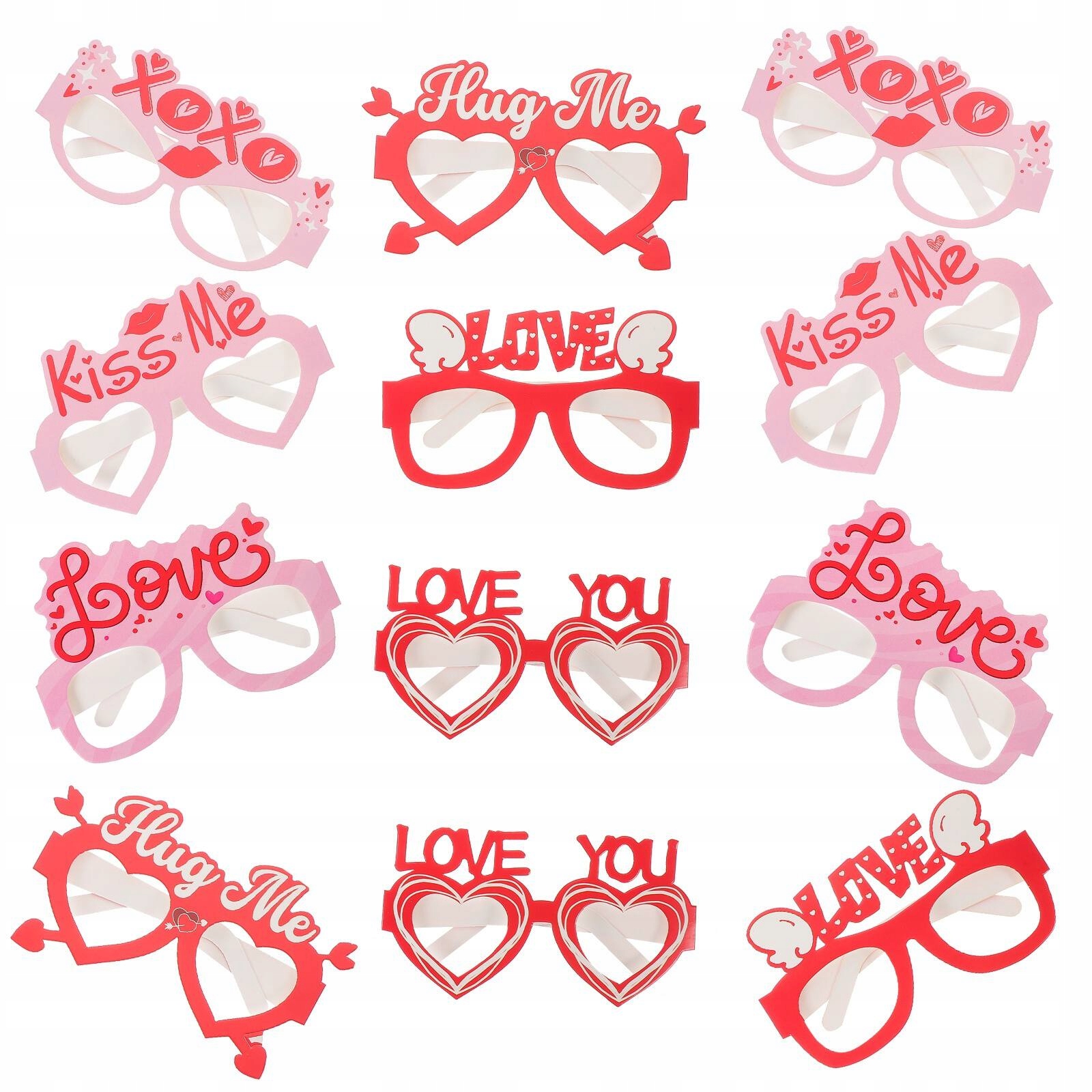 12 ШТ. КОЛЬОРОВІ ПАПЕРОВІ ОКУЛЯРИ У ФОРМІ СЕРДЕЦЬ ДЛЯ ДНЯ СВЯТОГО ВАЛЕНТИНА ТА ВЕЧІРОК