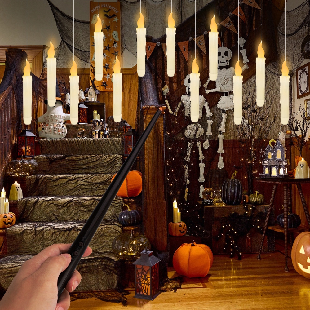 12 ШТ. СВІТЛОДІОДНІ СВІЧКИ З ЧАРІВНОЮ ПАЛИЧКОЮ ДИСТАНЦІЙНОГО КЕРУВАННЯ ПЛАВАЮЧА ПІДВІСНА ПРИКЛАДА