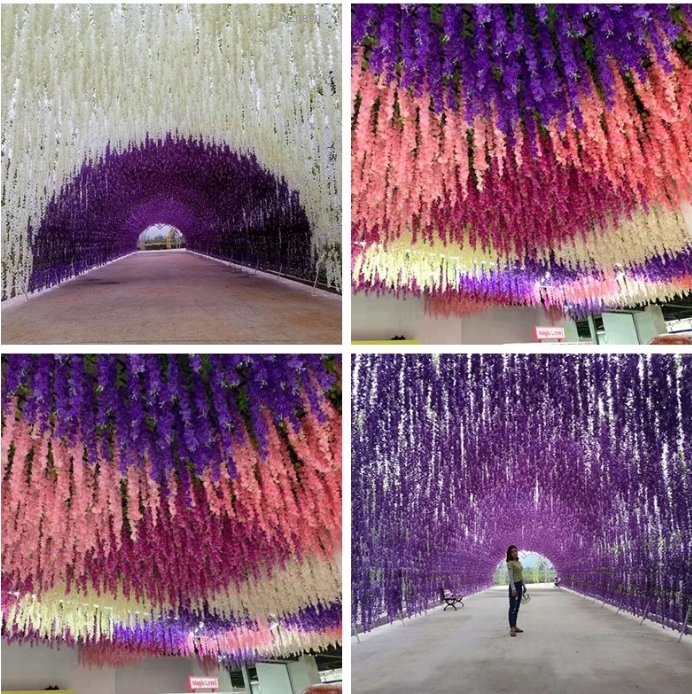 ✅Підвіси з квітів гліцинії кріпляться на дротяній ніжці, витягнутій пластиком і прикрашеній букетами листя. Стебла можна легко формувати та згинати.