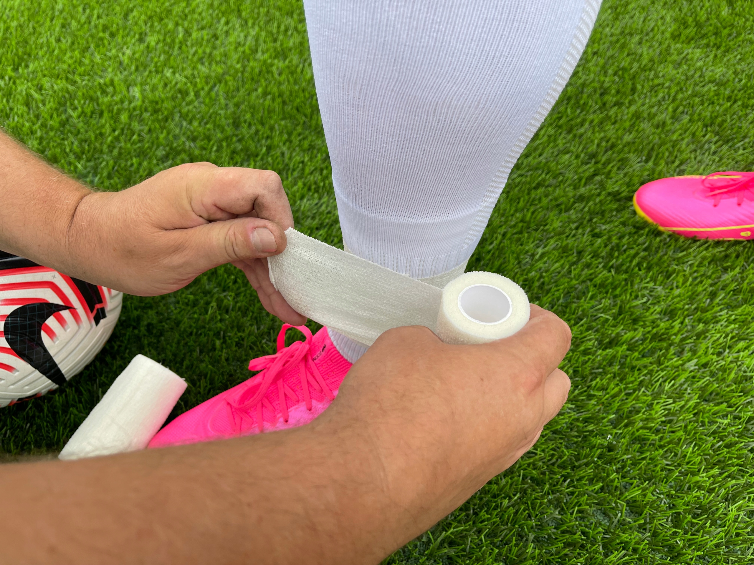 Кожен, хто грає у футбол, чудово знає, що під час динамічної гри у футбол раптові зміни у напрямку, ударах, передачах, ковзаннях або контактах із суперником, футбольні захисники люблять зношуватись, переставляти, зміщувати. Це дуже незручно і, таким чином, знижує наші здібності на полі.Еластичний бинт стабілізує протектор, тому нам не потрібно постійно його виправляти, а зосереджуватися на грі в найкращий футбол.З досвіду та футболу твердження, що оптимально підходить стрічка шириною 10 см, тому що її достатньо 2-3 рази обернути навколо ноги і можна вибігати на поле. Недолік вузьких бинтів полягає в тому, що їх потрібно перемотувати 7-8 разів, а це означає, що бинт швидше зношується, а двічі не так стабілізують протектор, як при використанні ширшого, тобто 10 см.