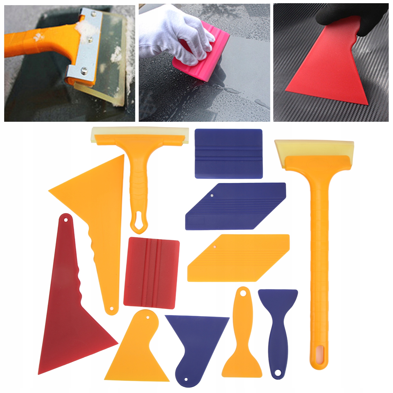 2. Високоякісні матеріали: Набір інструментів відтінків в основному виготовлений з надійного пластику та гуми з високою гнучкістю, непростим у пошкодженні, простим у чистому, довговічному та тривалому використанню. Професійний дизайн: Інструменти для вікон мають різні розміри. Ви можете використовувати автомобільні інструменти з вініловою фольгою для задоволення різних потреб з точки зору детальних ділянок та кутів. Практичні інструменти: Набір інструментів відтінків компактний та легкий, що робить його простішим та зручним для використання. Усі вони мають власні програми, надзвичайно придатні для початківців. Повний набір: Набір інструментів містить два квадратних скребків, два маленькі трикутні скребки, два великих трикутних скребків, два плоскі скребки, два сміливі скребки у формі гарбуза тощо.