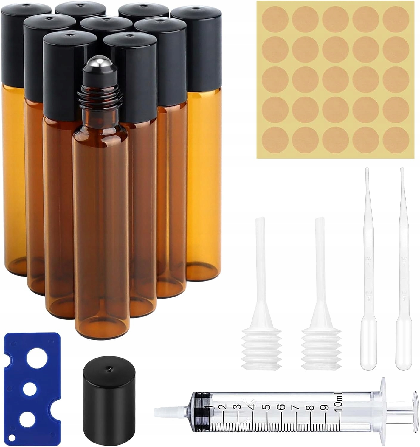 Наші флакони з ефірними оліями — це повний набір, який включає все необхідне для зберігання та застосування олій. У набір входять пляшки з високоякісного скла, кульки, що обертаються, і кришки-крапельниці, що забезпечує легке й точне нанесення.