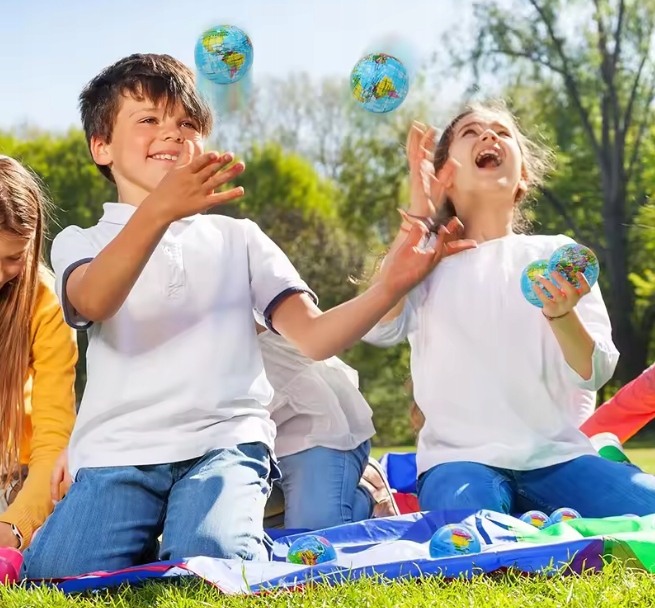 Кількість в упаковці:Упаковка включає 12 шт. кулястих стрес-кульок у формі кулі, включаючи карти континентів, довжин і паралелей планети.