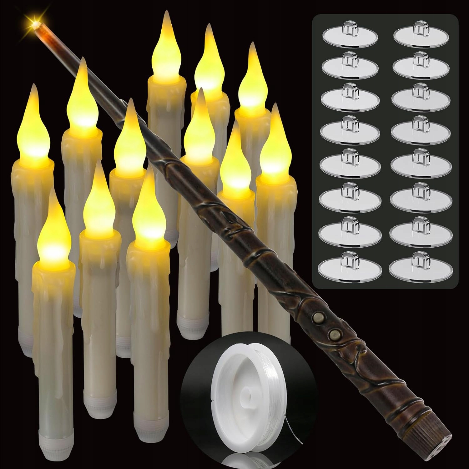 🕯 магія, левітуючі свічки, які забезпечують захоплюючу прикрасу: змініть свою кімнату завдяки цій унікальній плаваючій свічці, які постачаються майже невидимальною риболовною лінією. Прикріпіть світлодіодні свічки до стелі шпильками або повісіть їх, щоб створити магічну атмосферу. Ідеально підходить для різдвяних прикрас, послуг, прикрас для вікон, камінів та багатьох інших - ідеально підходить для внутрішніх та зовнішніх прикрас на вікнах, стелях, стінах чи шафах.