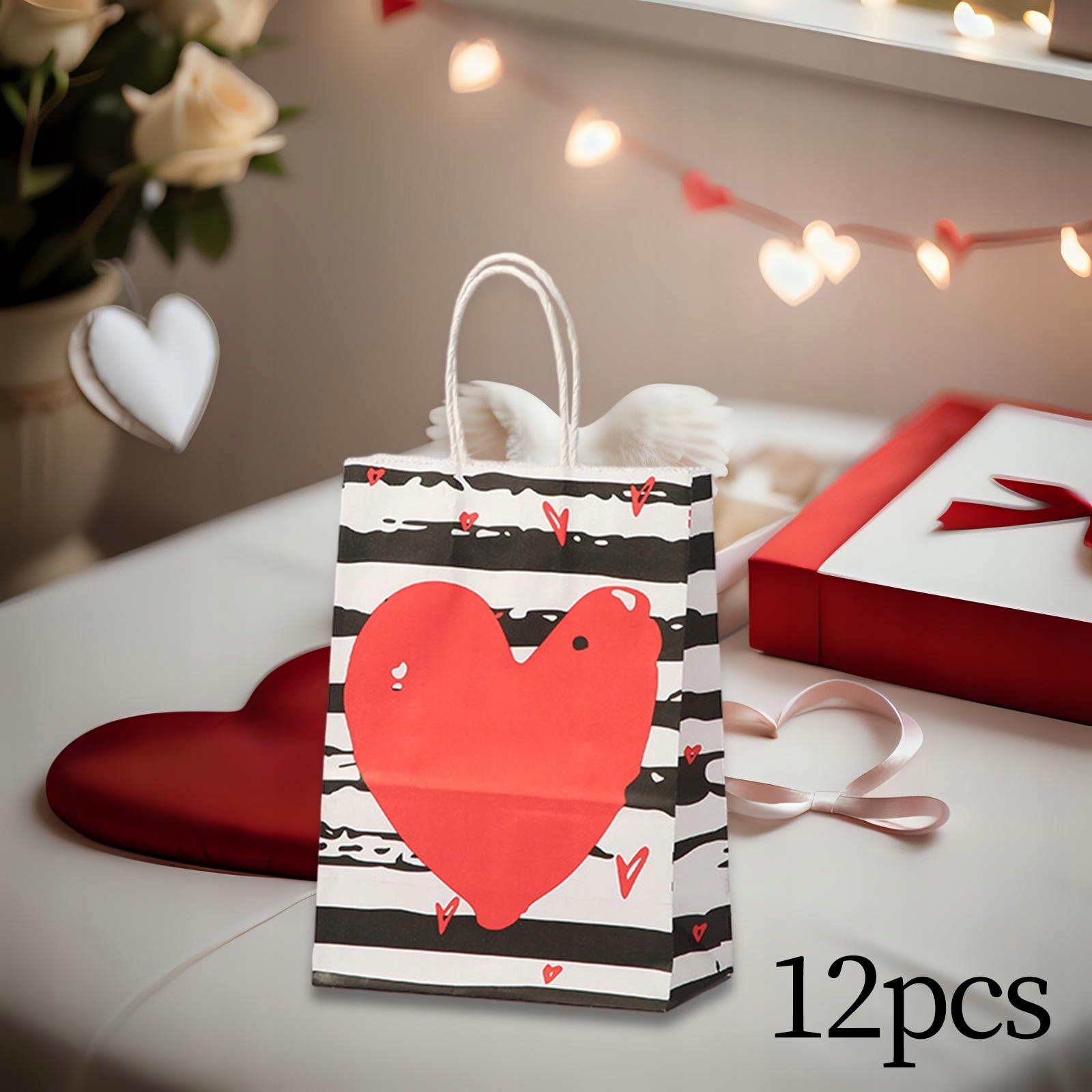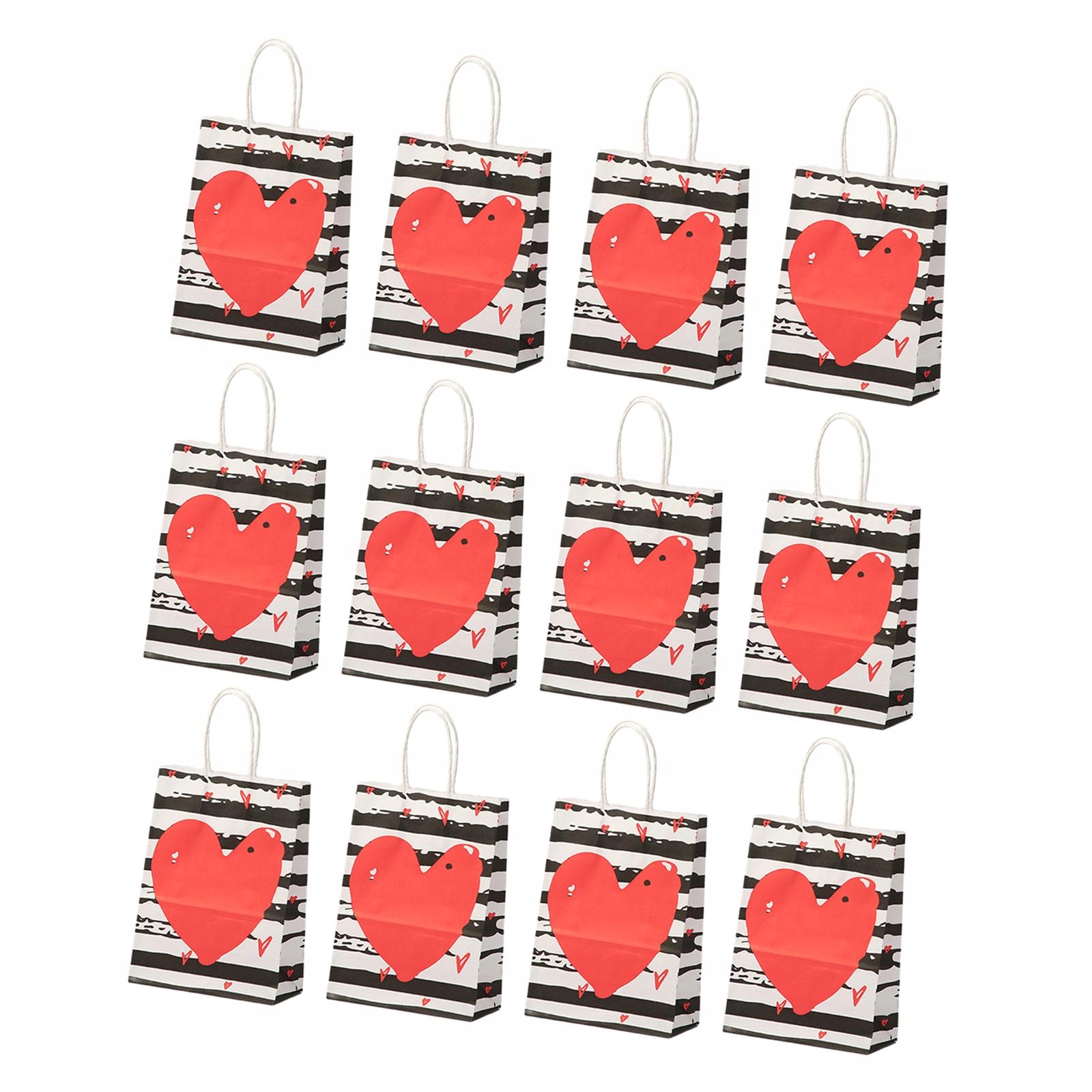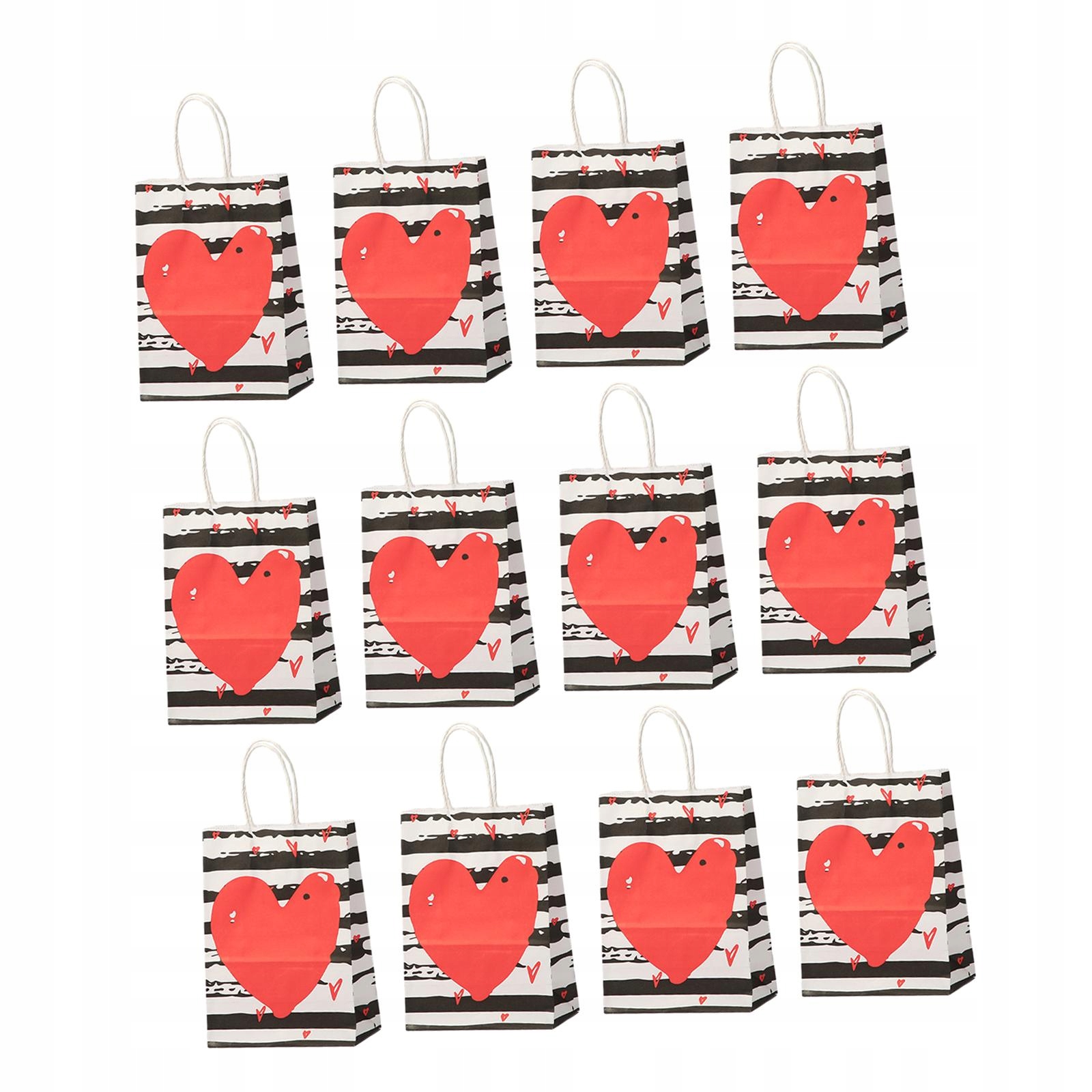 12 szt. Torby na prezenty Torby papierowe Torby na prezenty walentynkowe Party Czarny biały