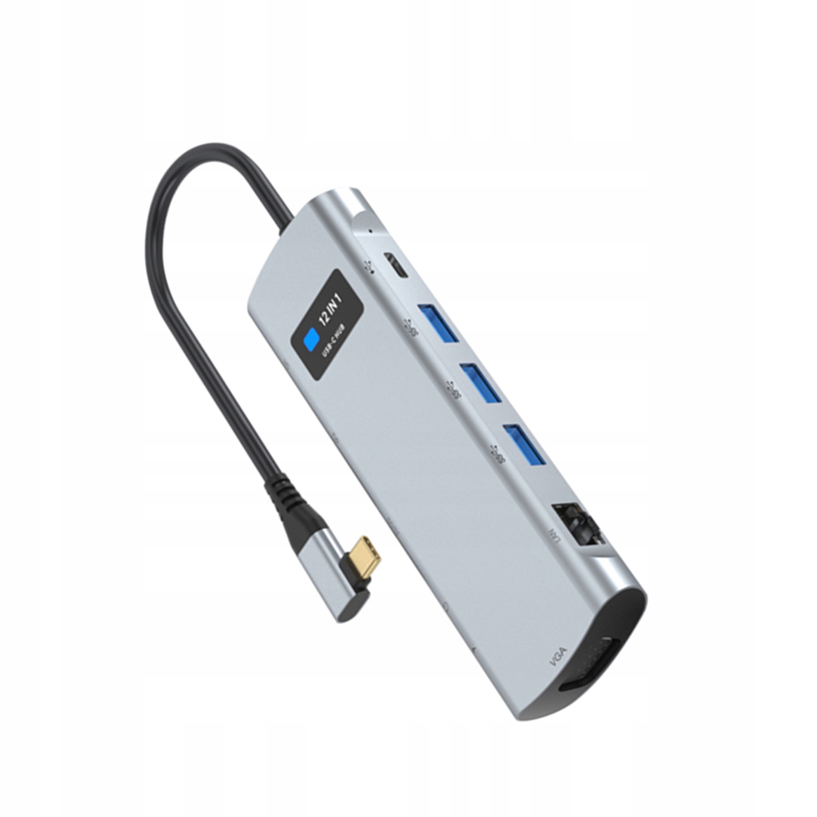 12-в-1 Тип C/M для PD USB3.0*3 Тип C/F SD/TF RJ45 3,5 мм Аудіо HD VGA 1G