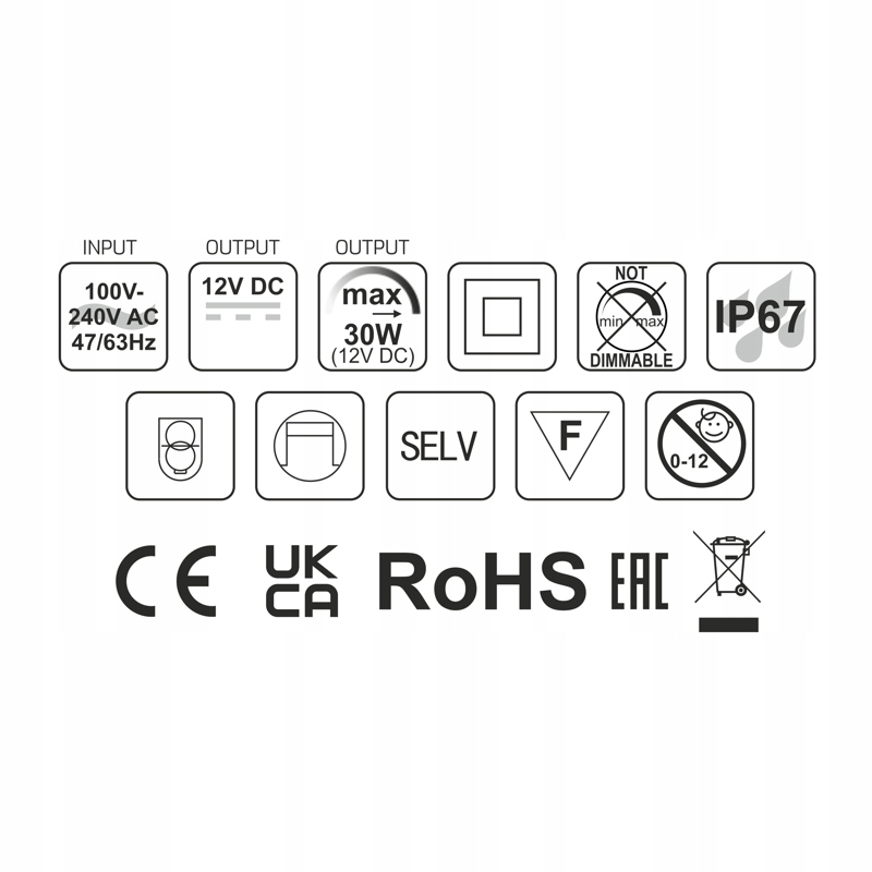 Професійна, компактна світлодіодна компактна живлення з живленням 30 Вт та вихідна напруга 12 В постійного струму . Призначений для легкої установки в стандартних електричних банках Ø60 мм . Завдяки класу жорсткості, IP67 повністю стійкий до пилу. Ідеально підходить для подачі світлодіодних смуг та інших світлодіодних пристроїв, які потребують стабільної напруги.