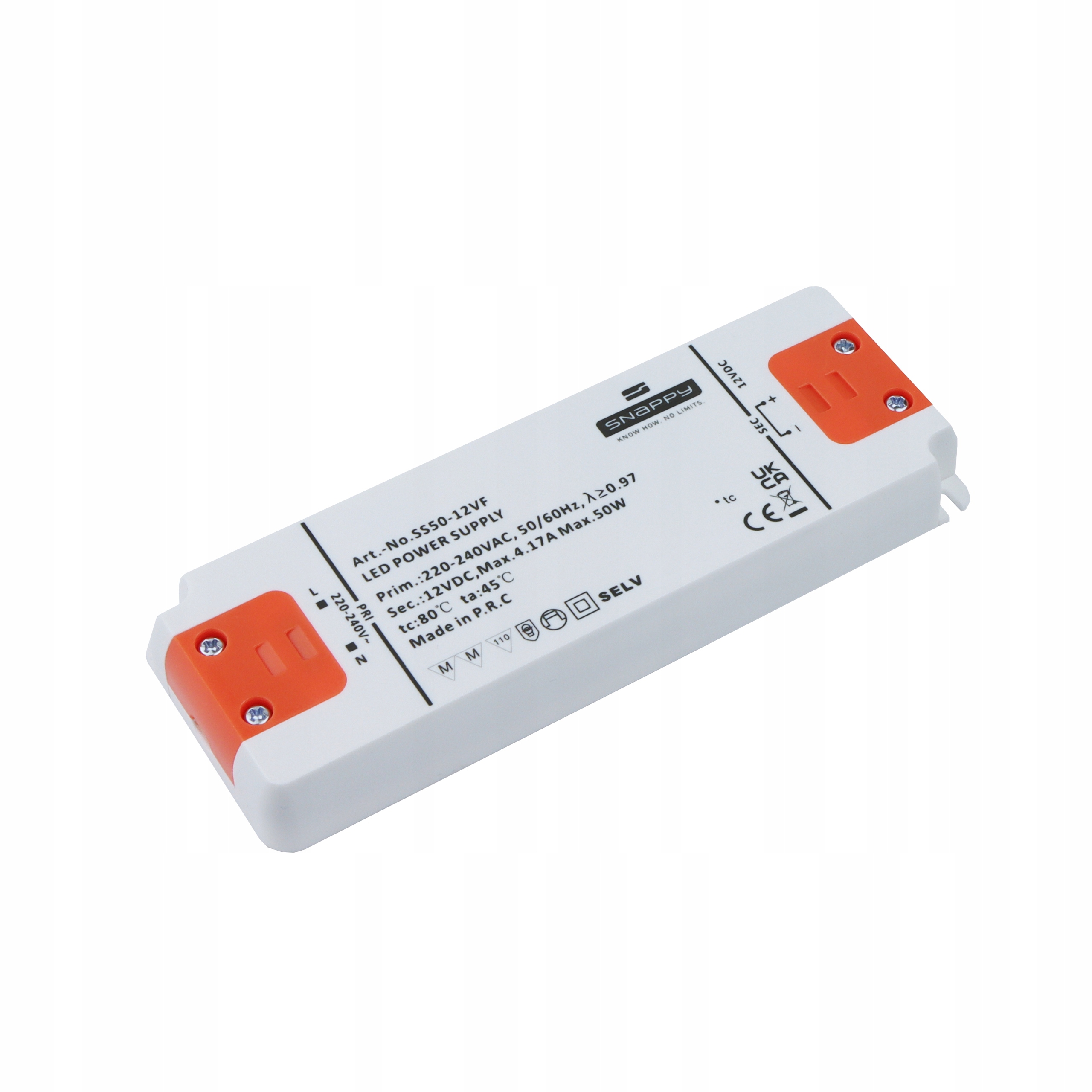 Преміум -світлодіодне джерело живлення живиться від напруги на суму 230 В ~ 50 Гц. Зниження вихідної напруги до 12 В постійного струму. Він укладений у корпус білого пластику.