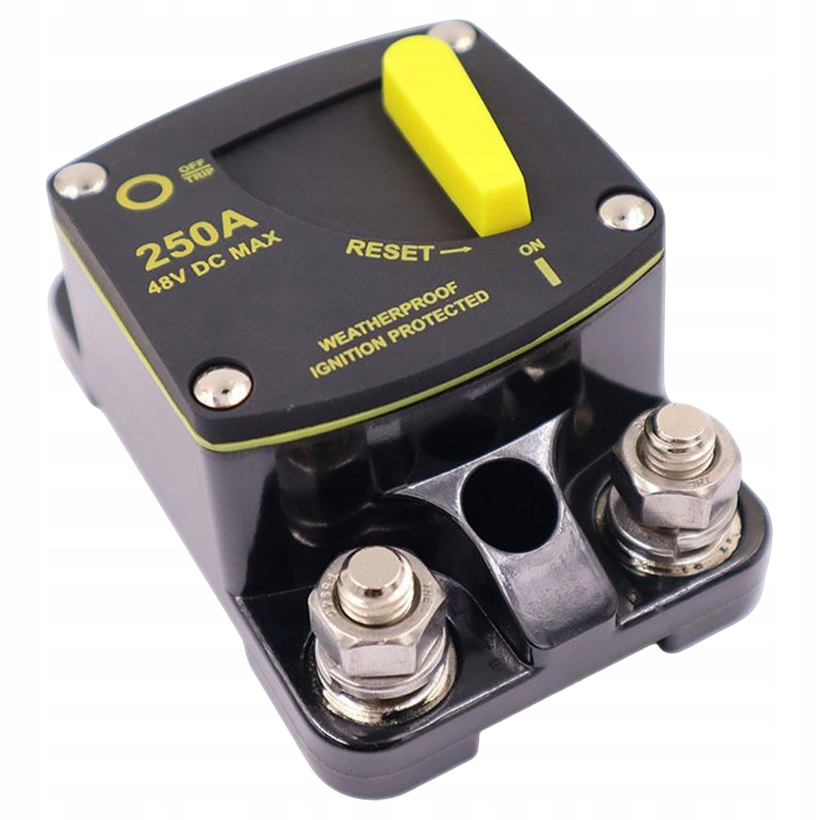 Жовтий перемикач ручного скидання: Тепловий перемикач з високим струмом, придатним для використання в допоміжних електричних системах постійного струму, для використання у важких умовах для забезпечення захисту у випадку перевантаження струму або короткого замикання. Двигуни та зуби.