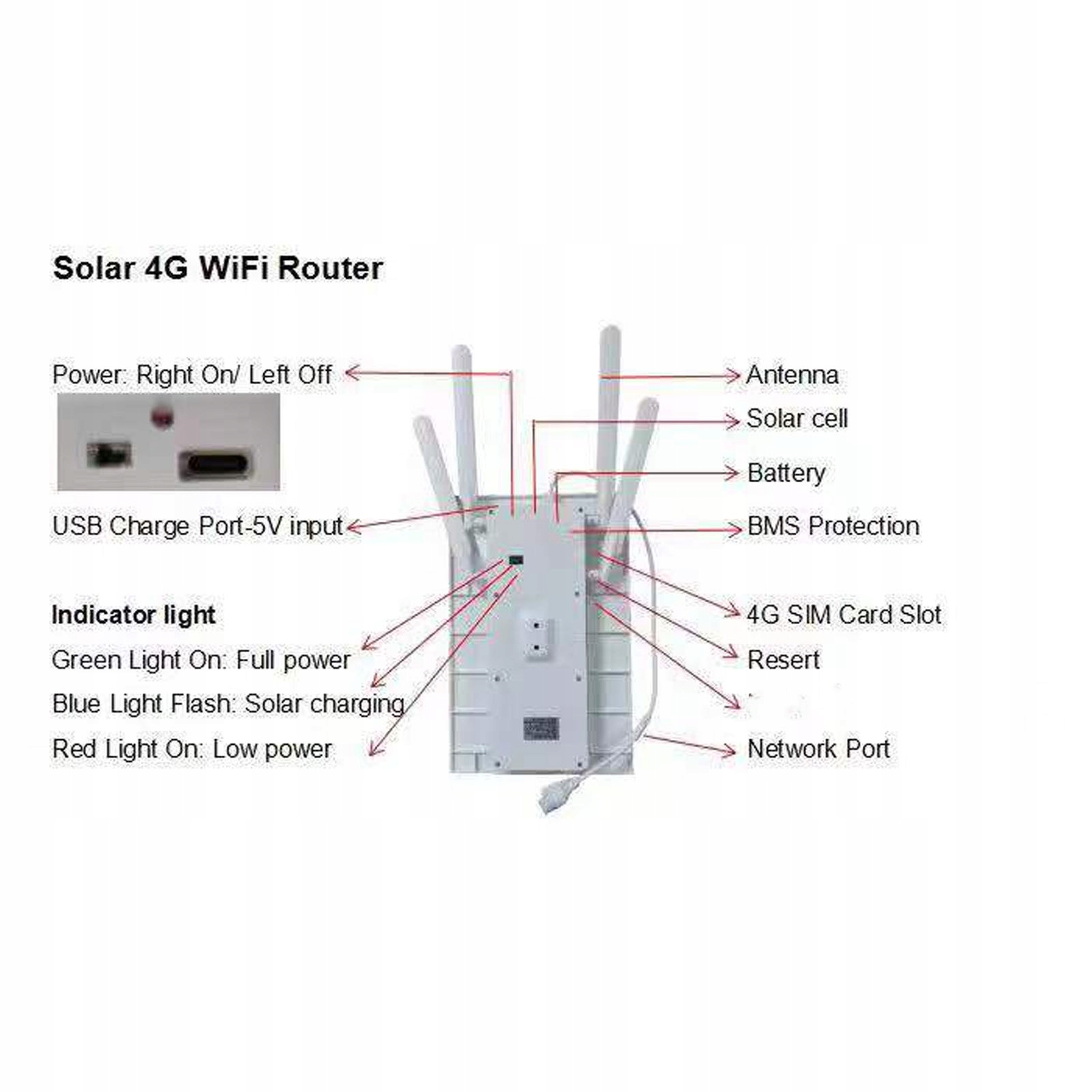 12 Вт 4G LTE МАРШРУТИЗАТОР LTE модем 300 Мбіт/с Solar WiFi 6 Extender з карткою KA